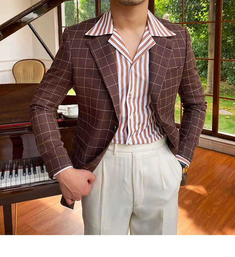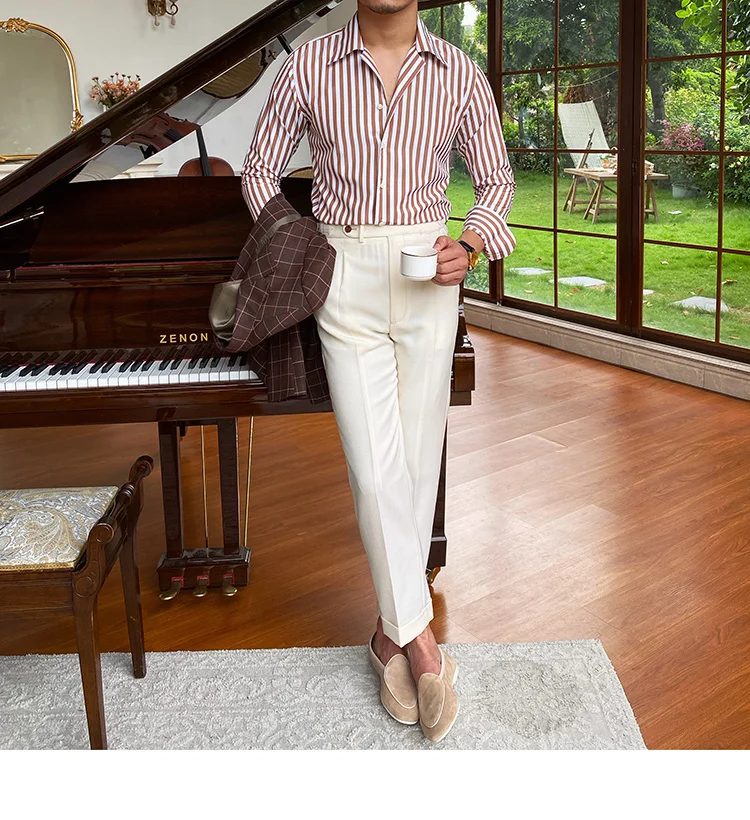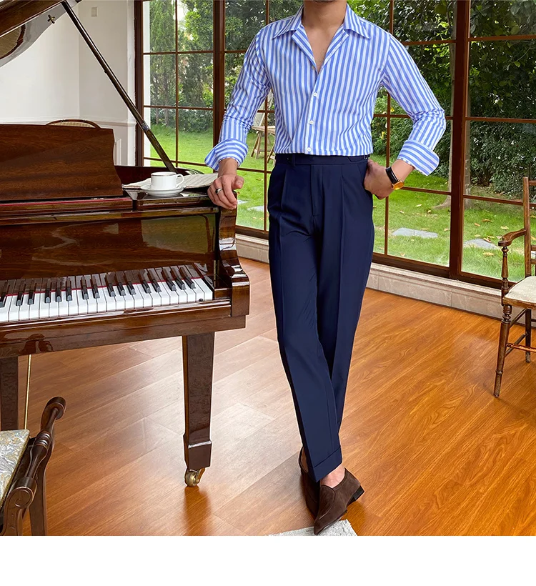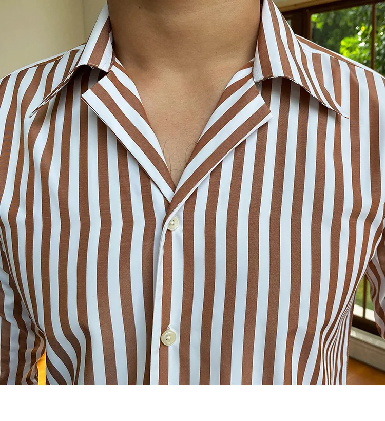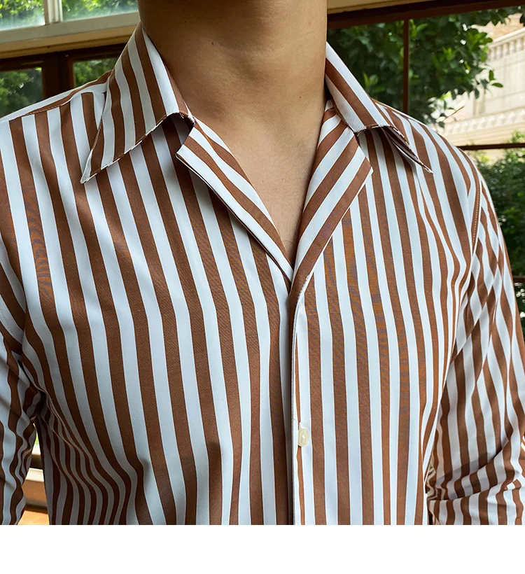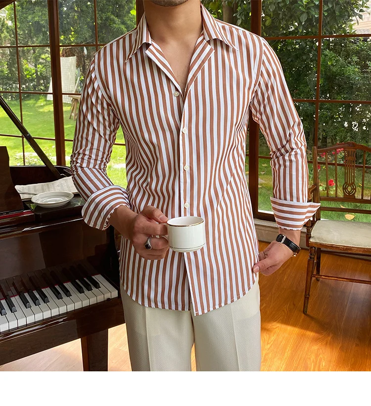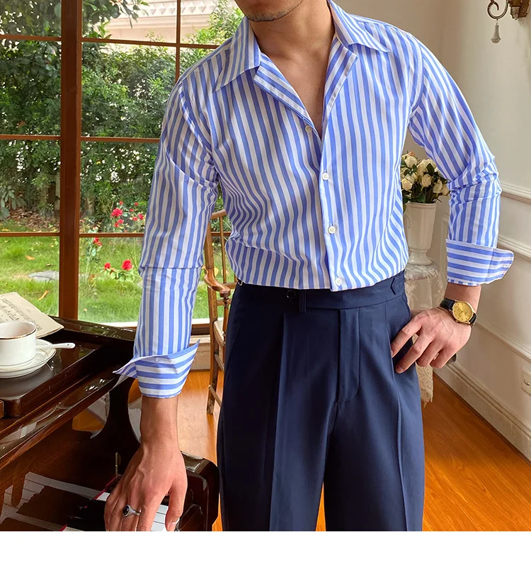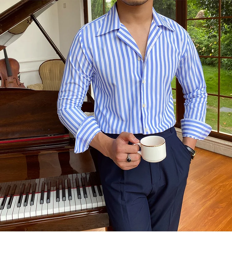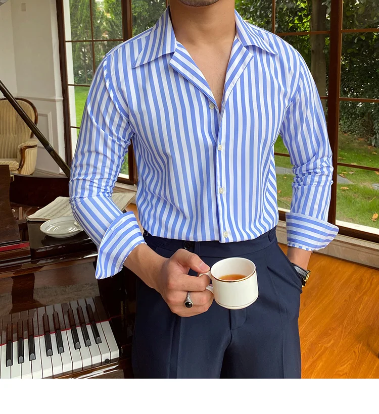 الأعمال شريط قمصان الرجال كوبا طوق قميص طويل الأكمام البريطانية موضة ضئيلة قميص الاتجاه الرجال قميص مكتب سهرة قميص الاجتماعية