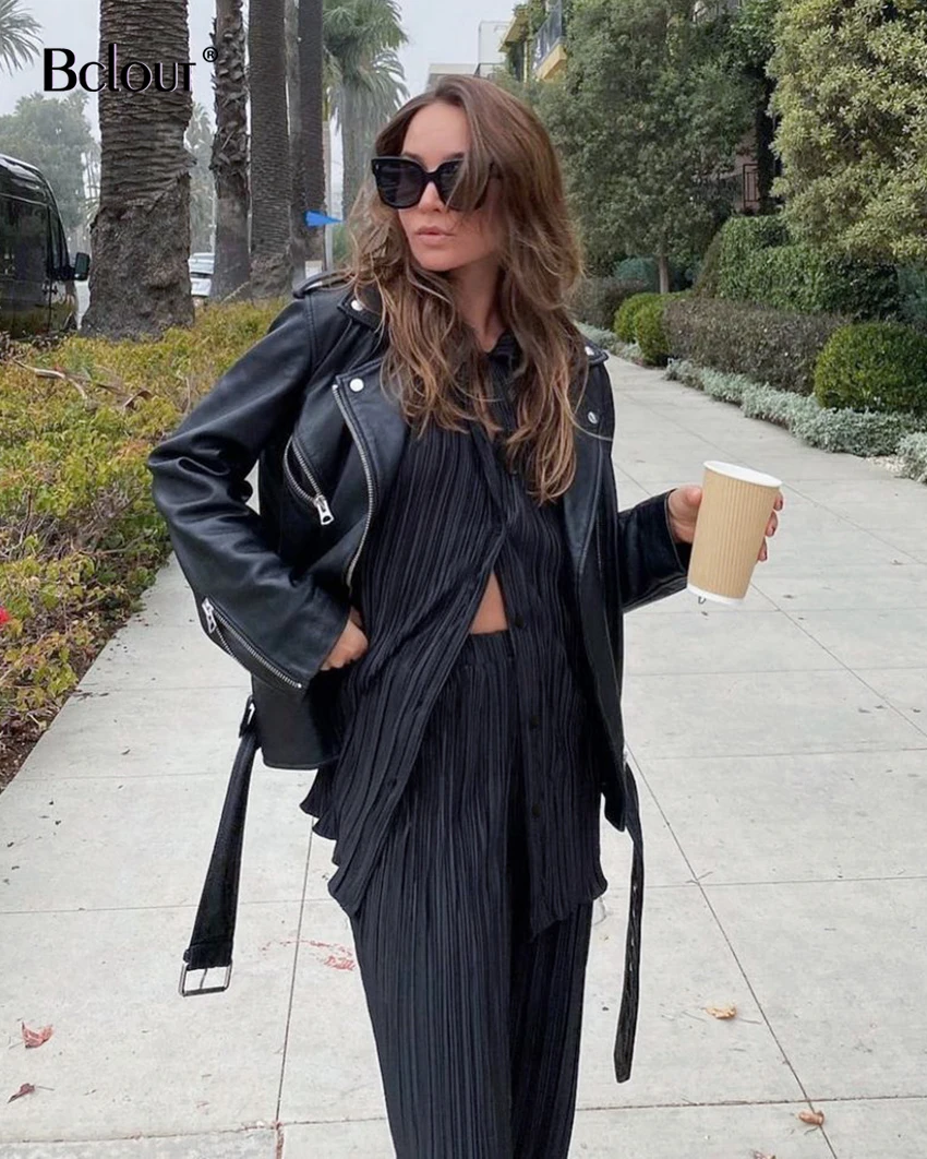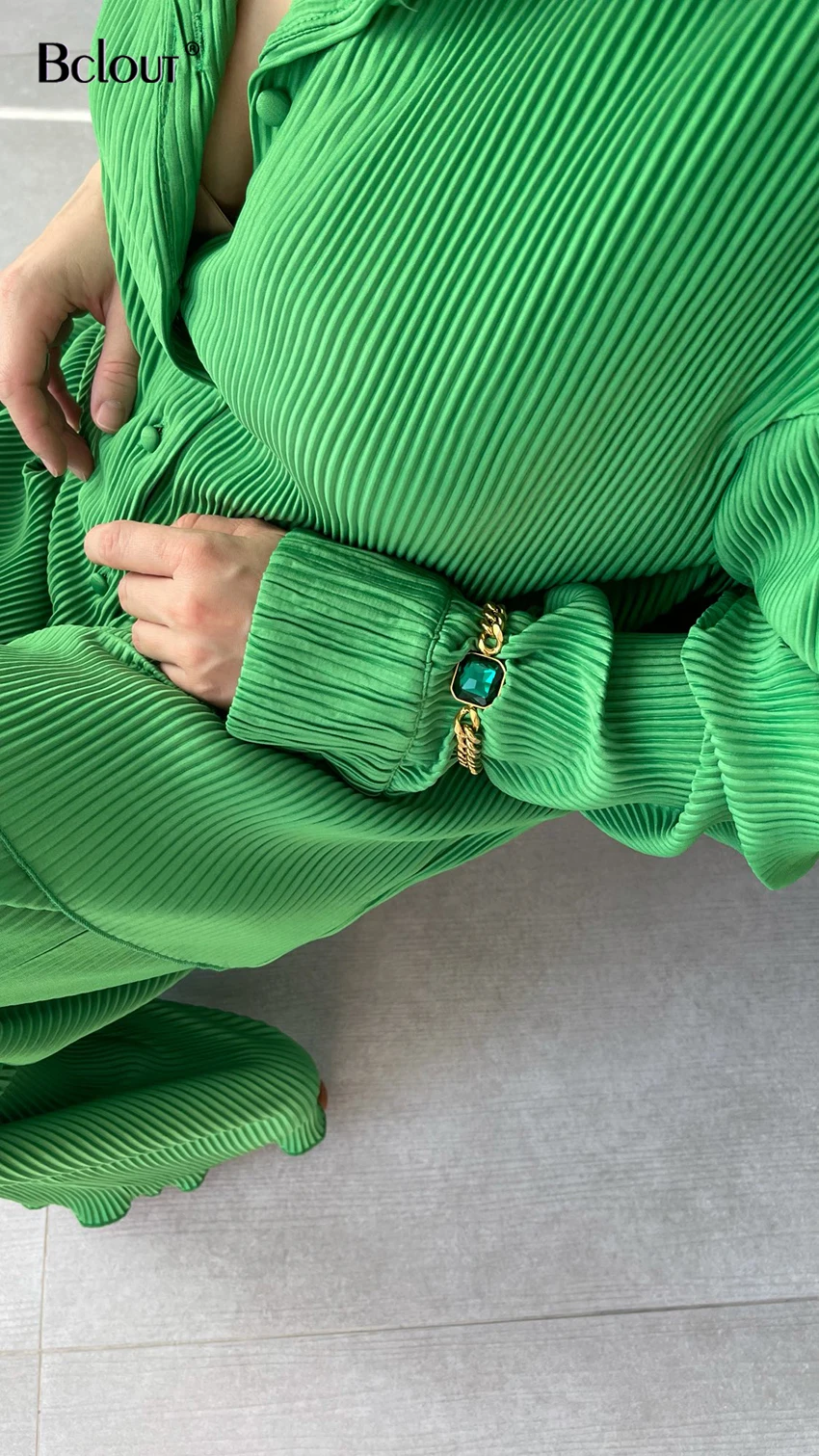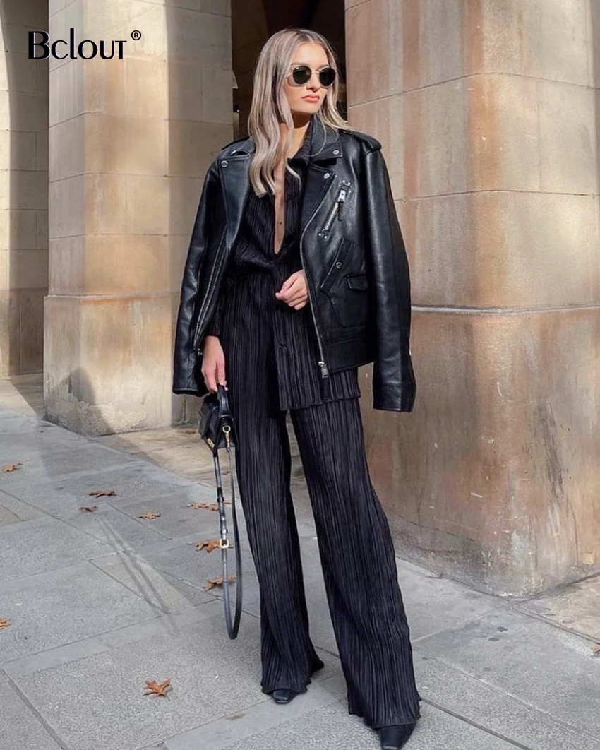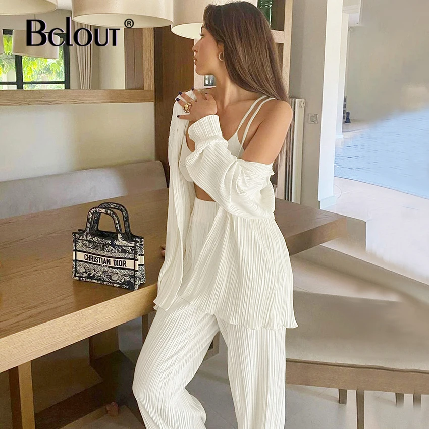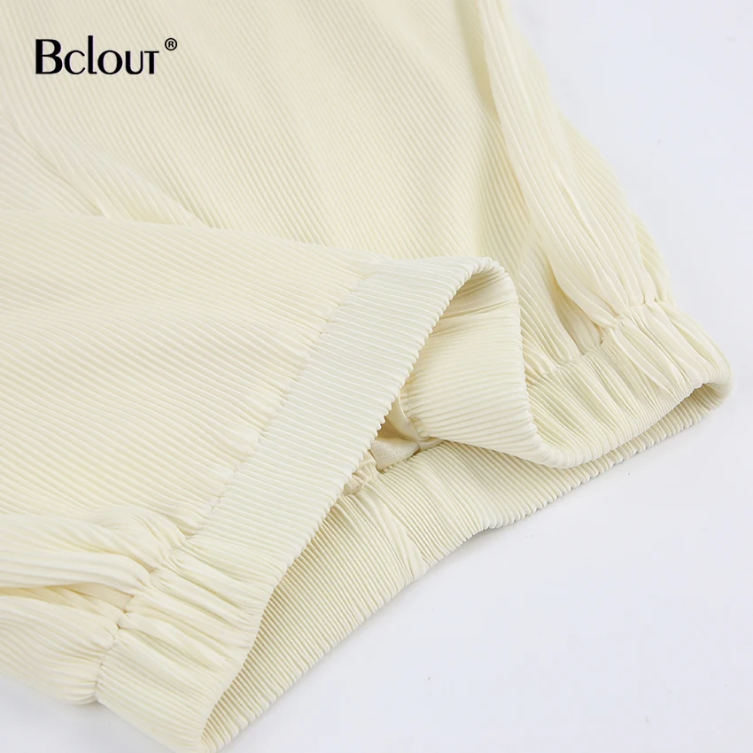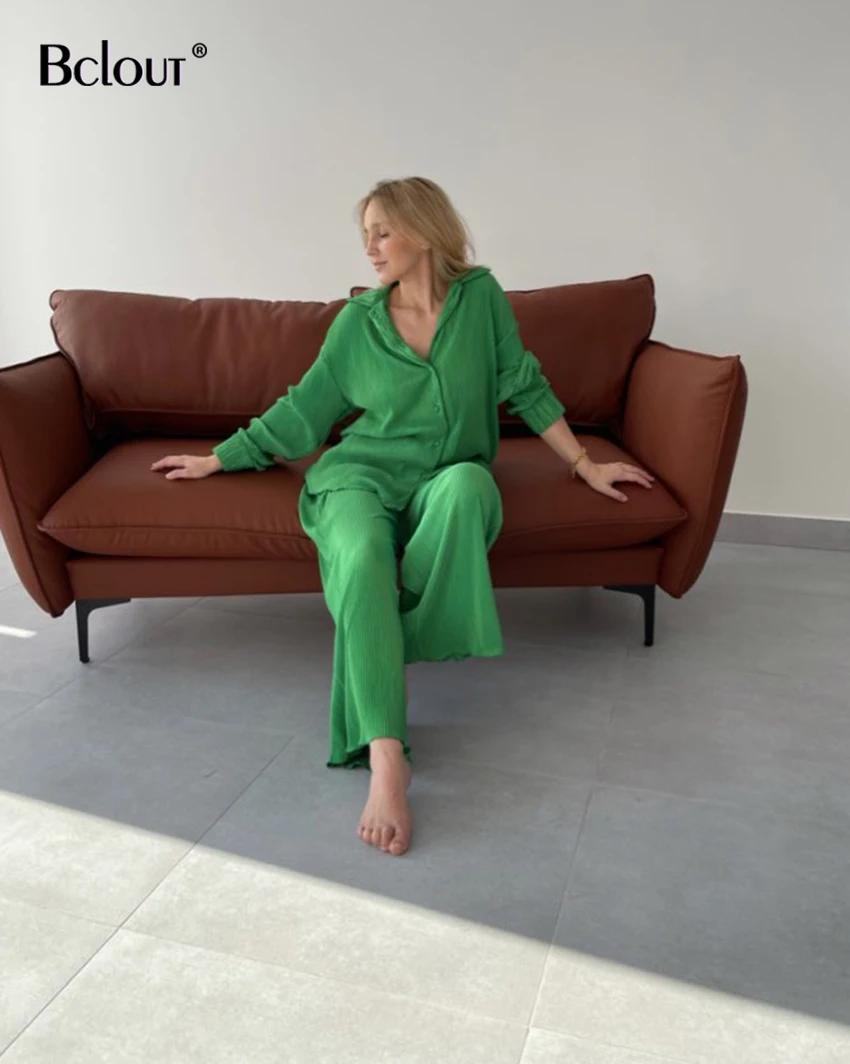 طقم بنطال أنيق بكلاوت وبيج مطوي للنساء ، ملابس من قطعتين ، بلوزات فضفاضة بأكمام طويلة ، بنطال طويل عالي الخصر ، بدلات خريفية ،