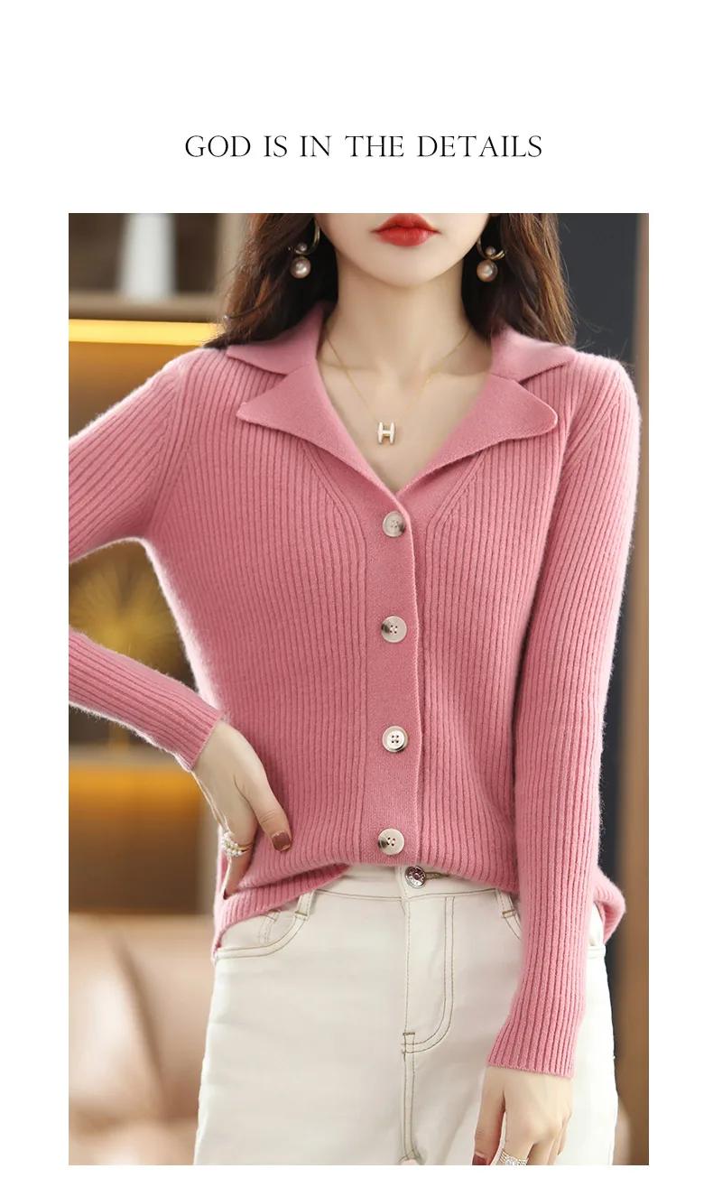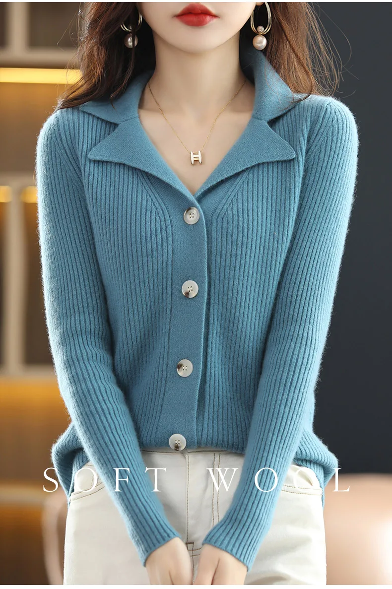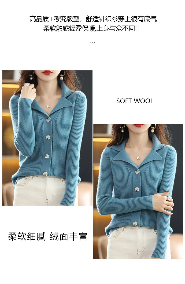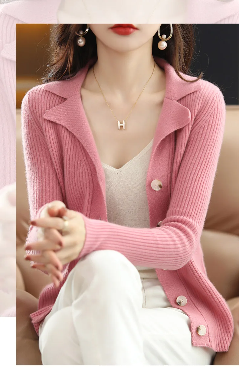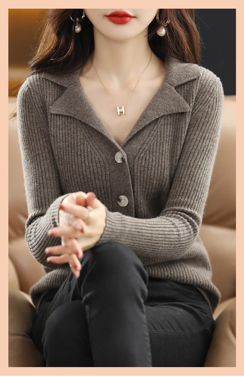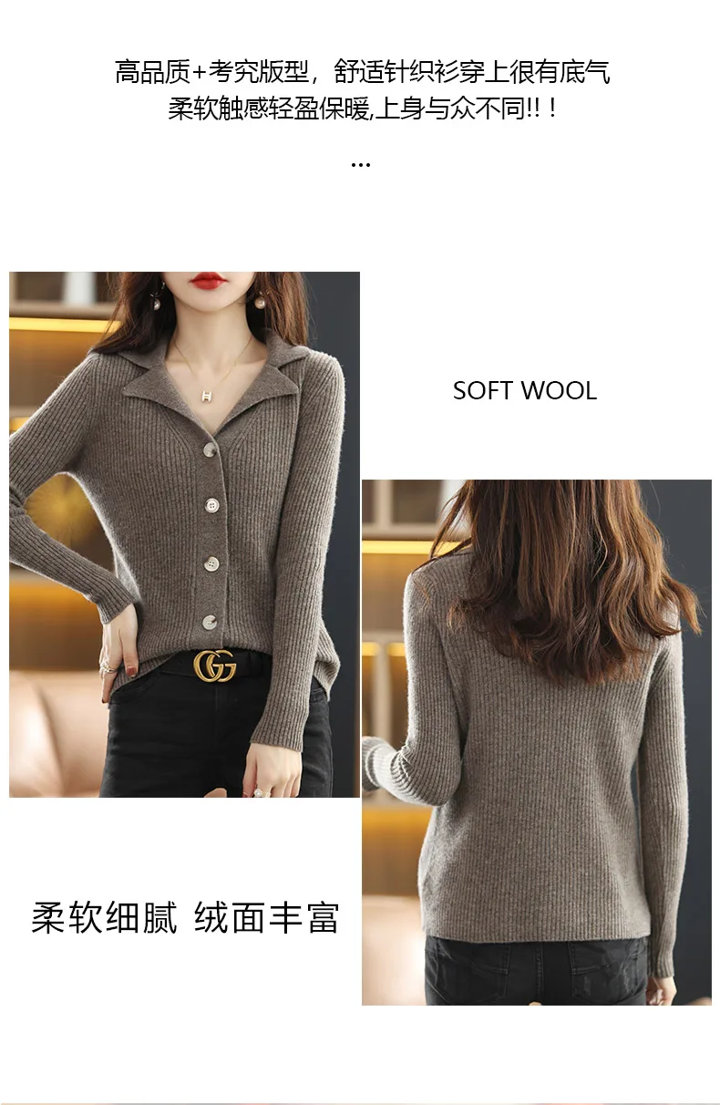 الصوف الخالص سترة مشغولة من الصوف المرأة الربيع والخريف جديد فضفاض و رقيقة رائعة الملابس النسائية شيك التلبيب سترة الكشمير المعنقة