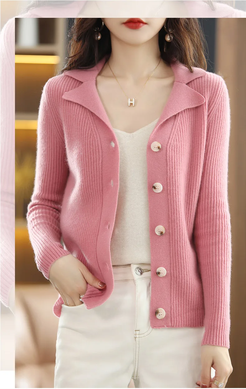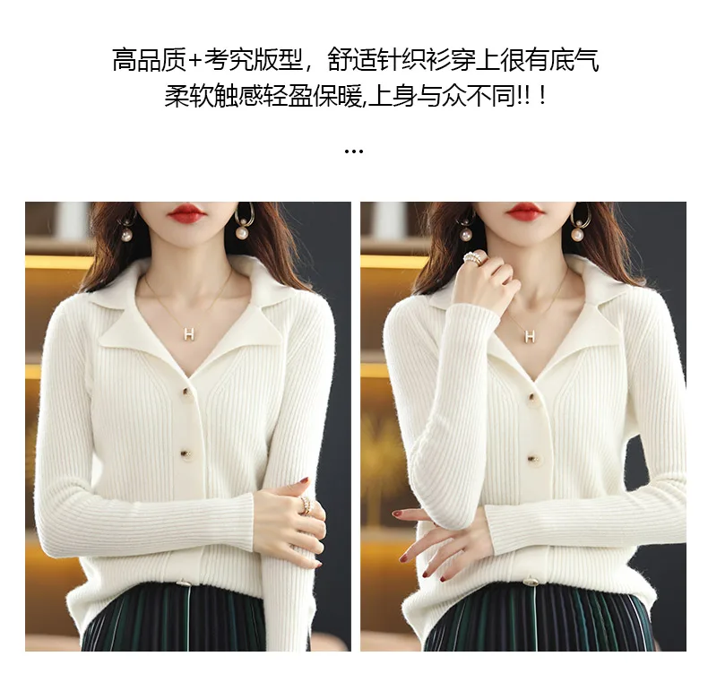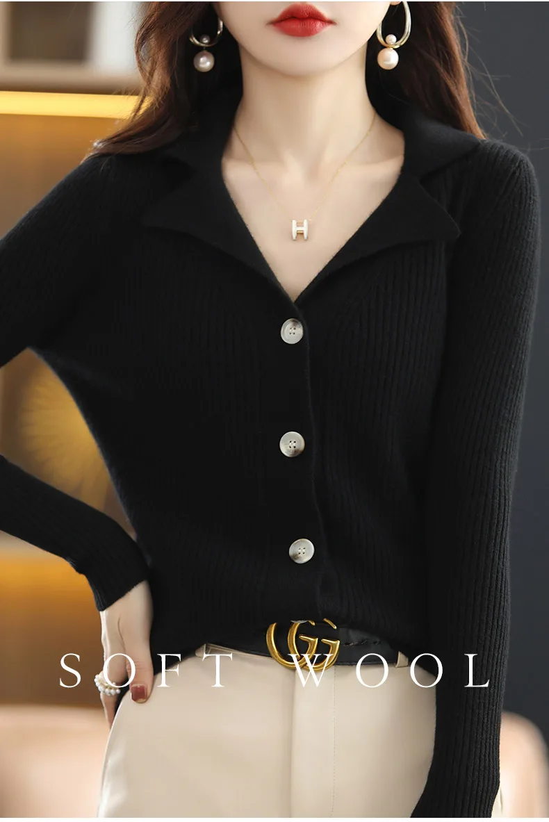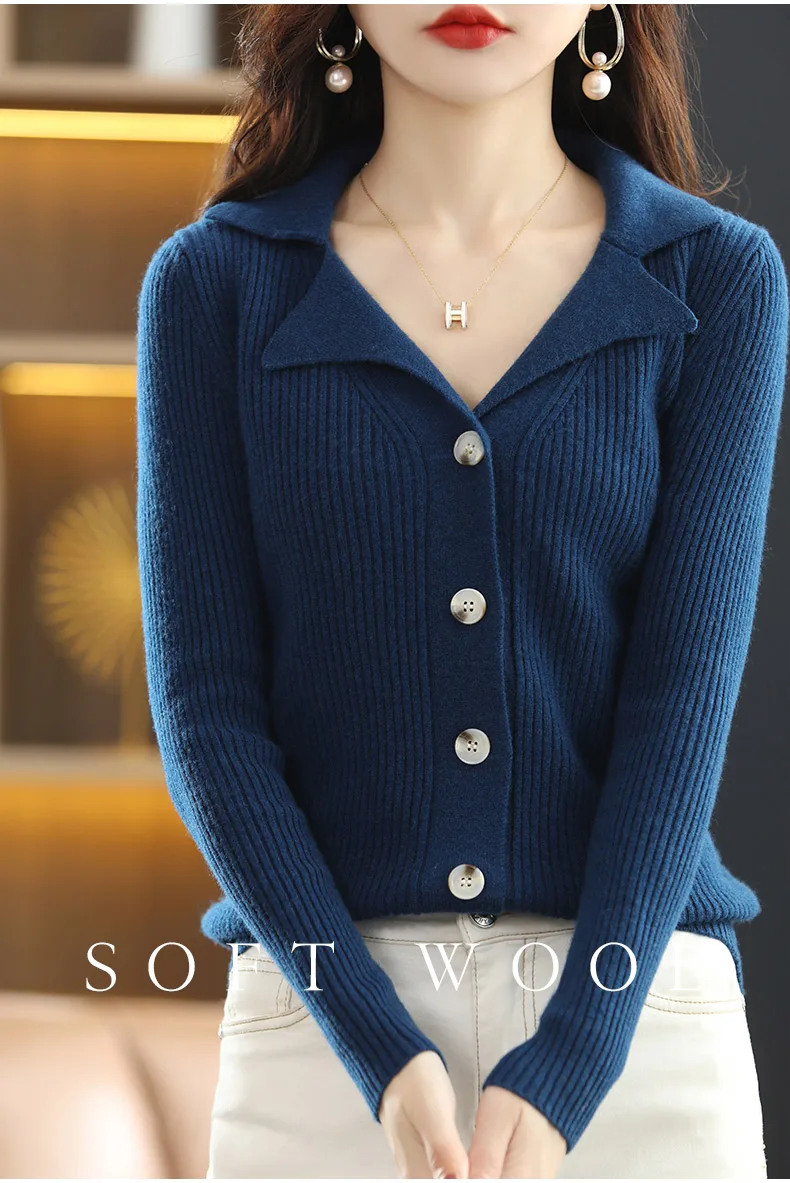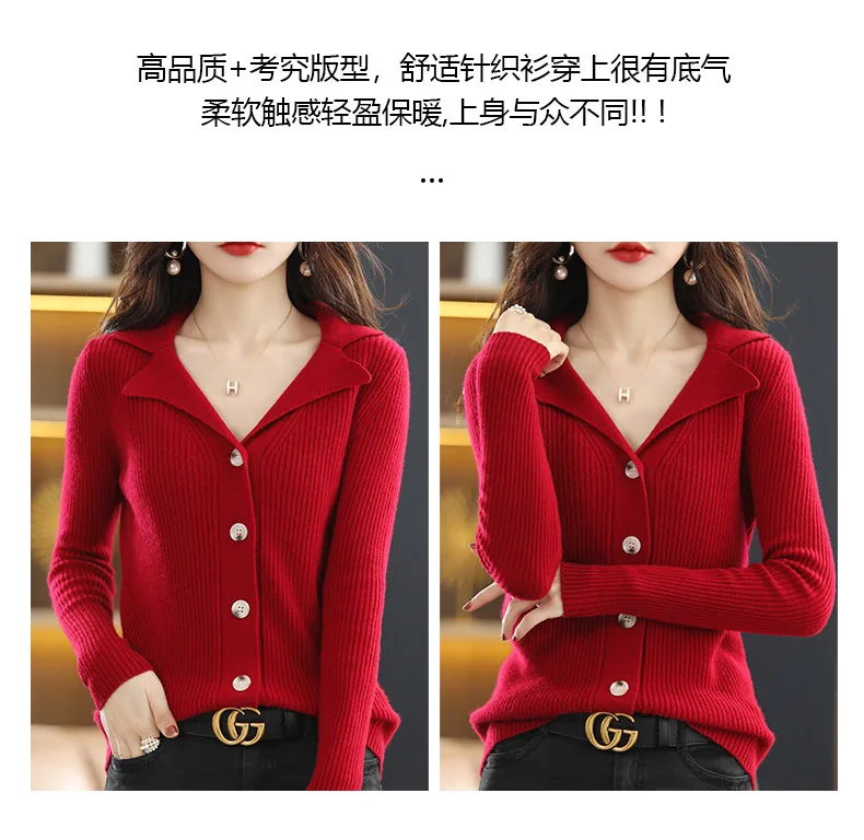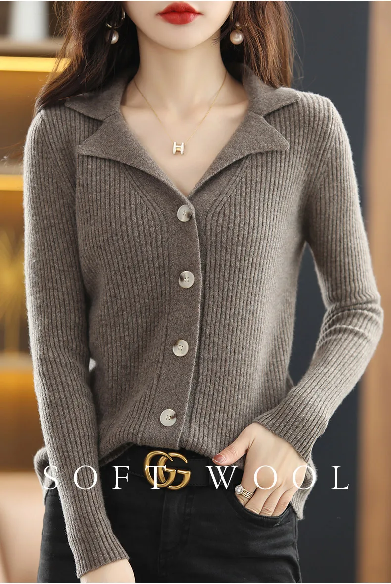 الصوف الخالص سترة مشغولة من الصوف المرأة الربيع والخريف جديد فضفاض و رقيقة رائعة الملابس النسائية شيك التلبيب سترة الكشمير المعنقة