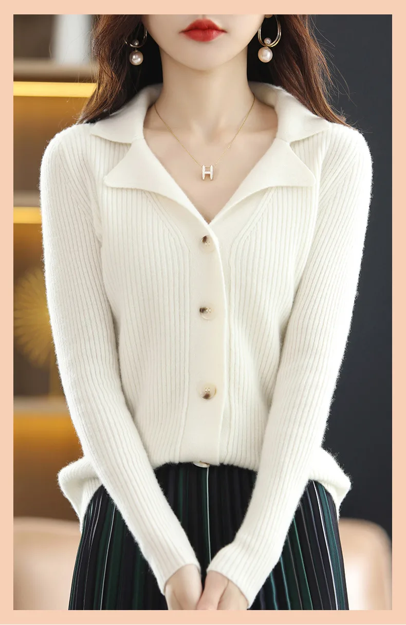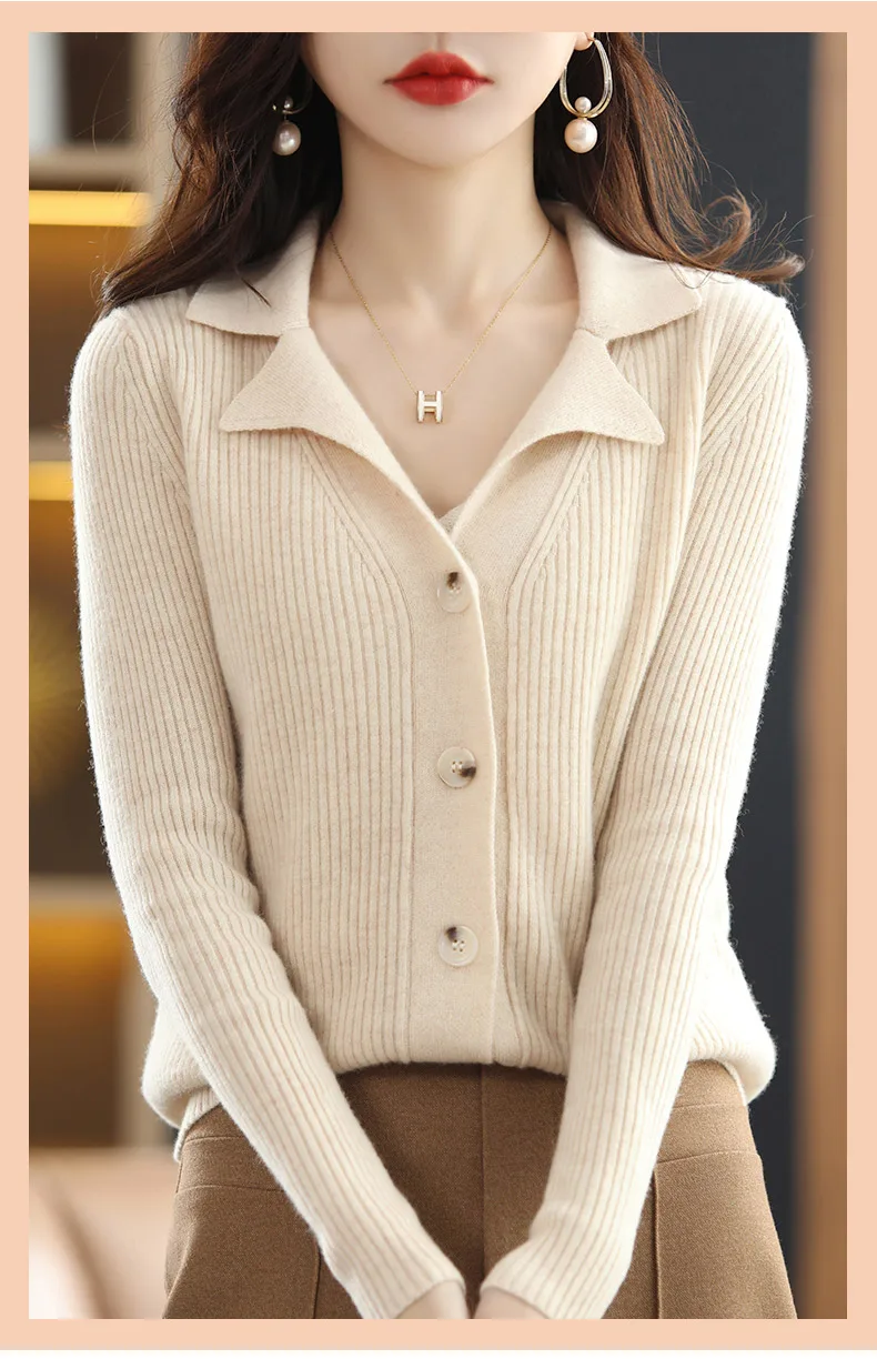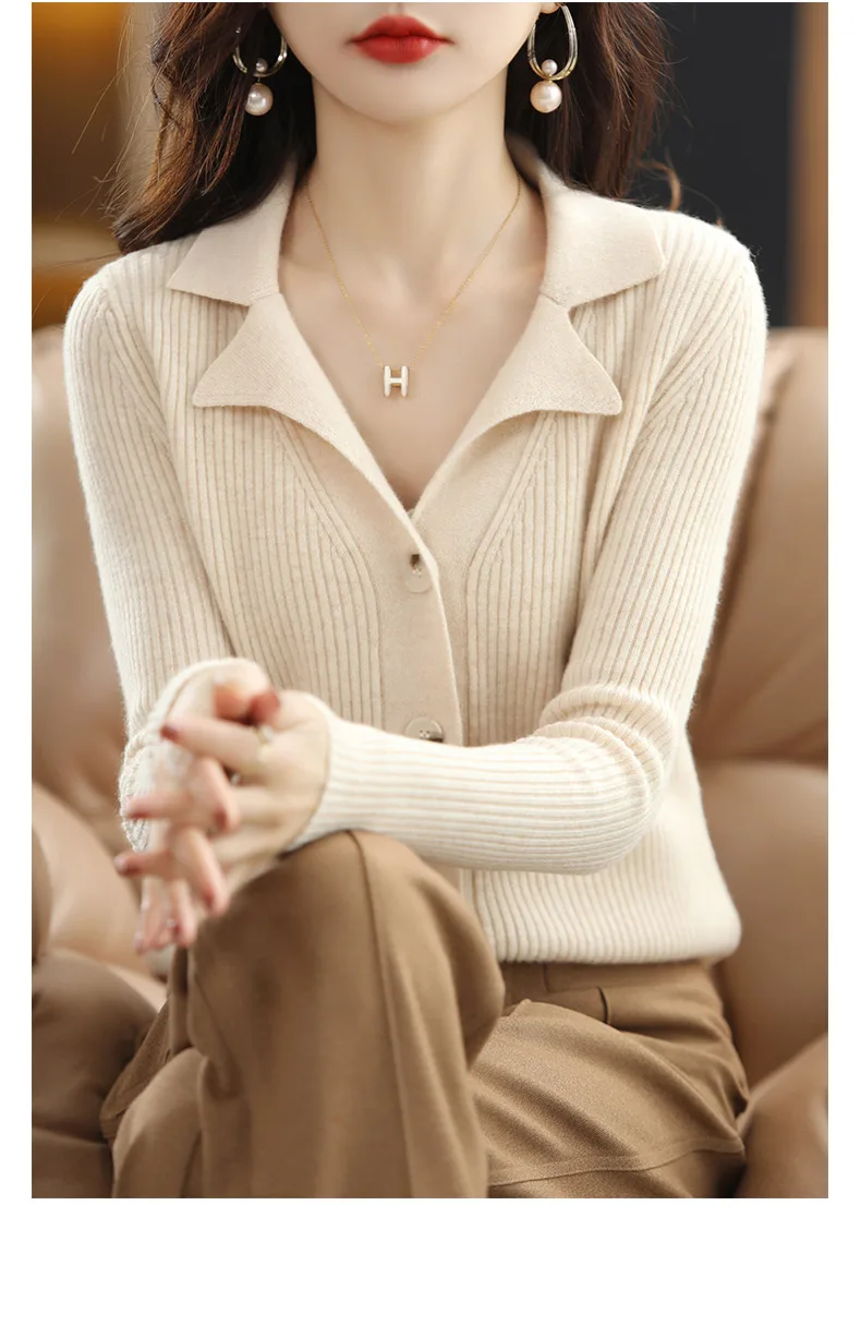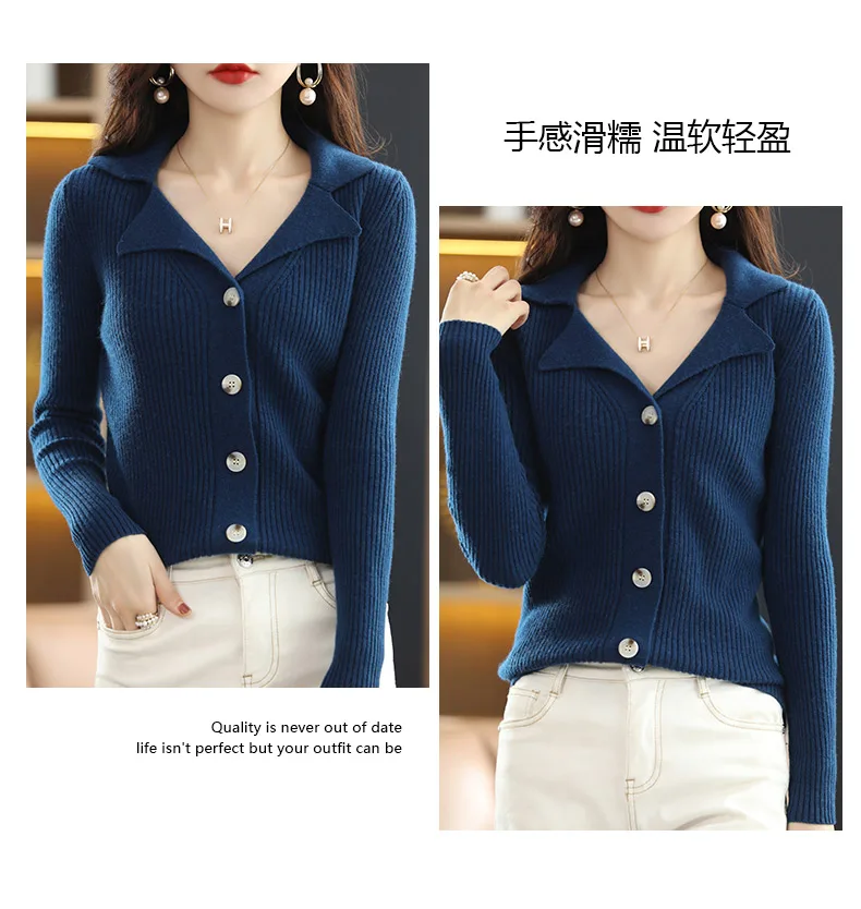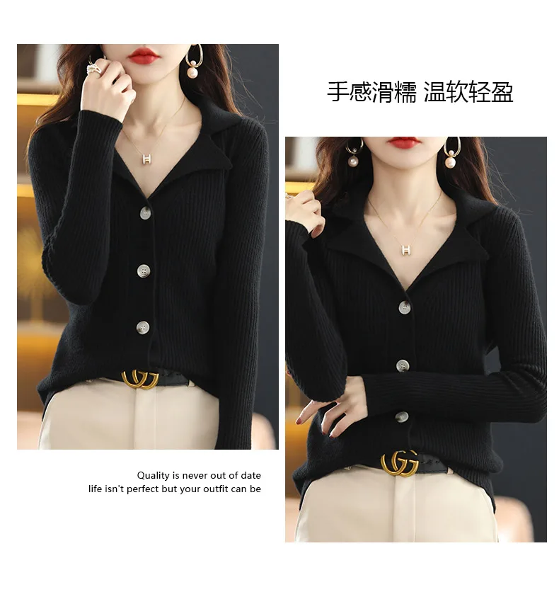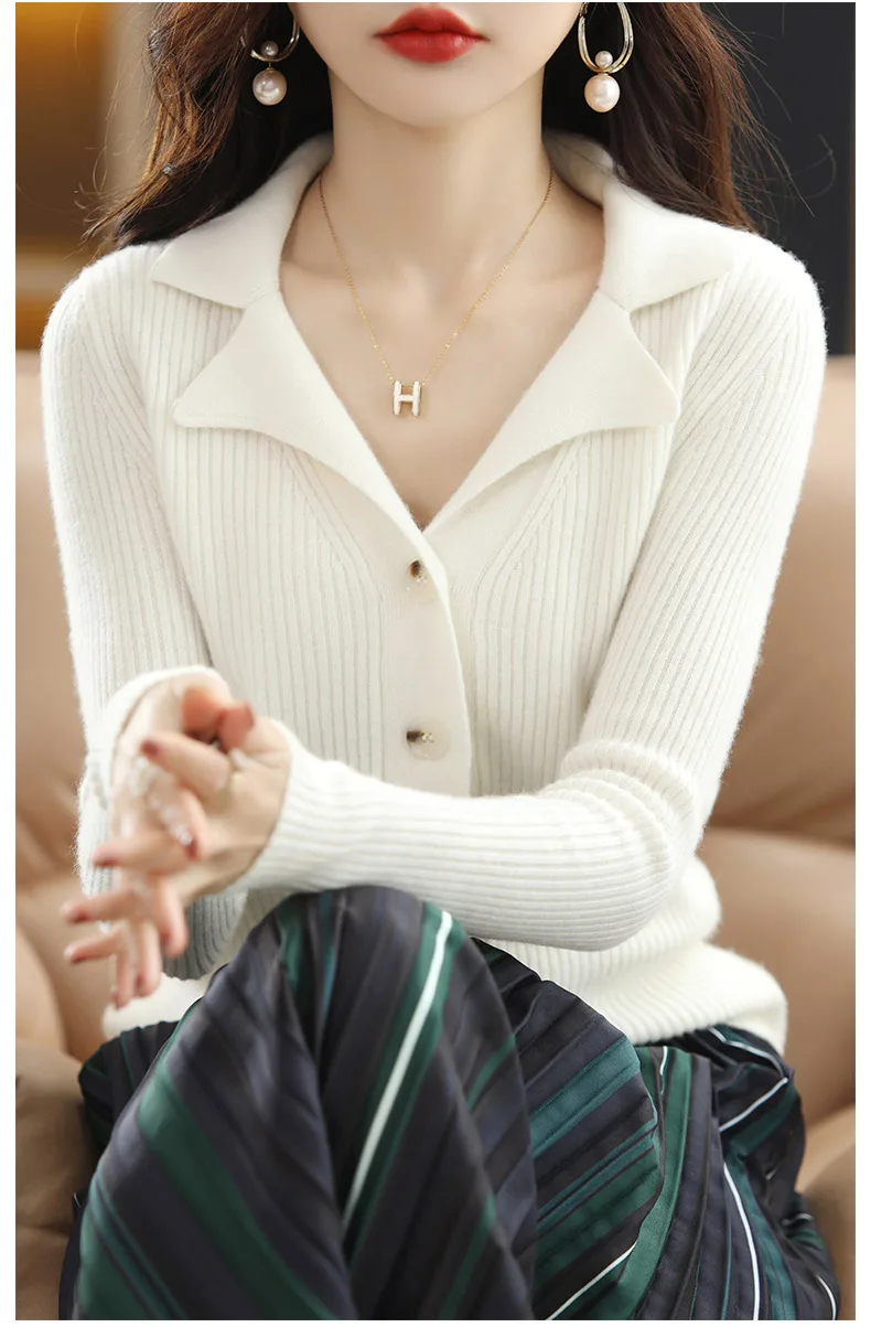 الصوف الخالص سترة مشغولة من الصوف المرأة الربيع والخريف جديد فضفاض و رقيقة رائعة الملابس النسائية شيك التلبيب سترة الكشمير المعنقة
