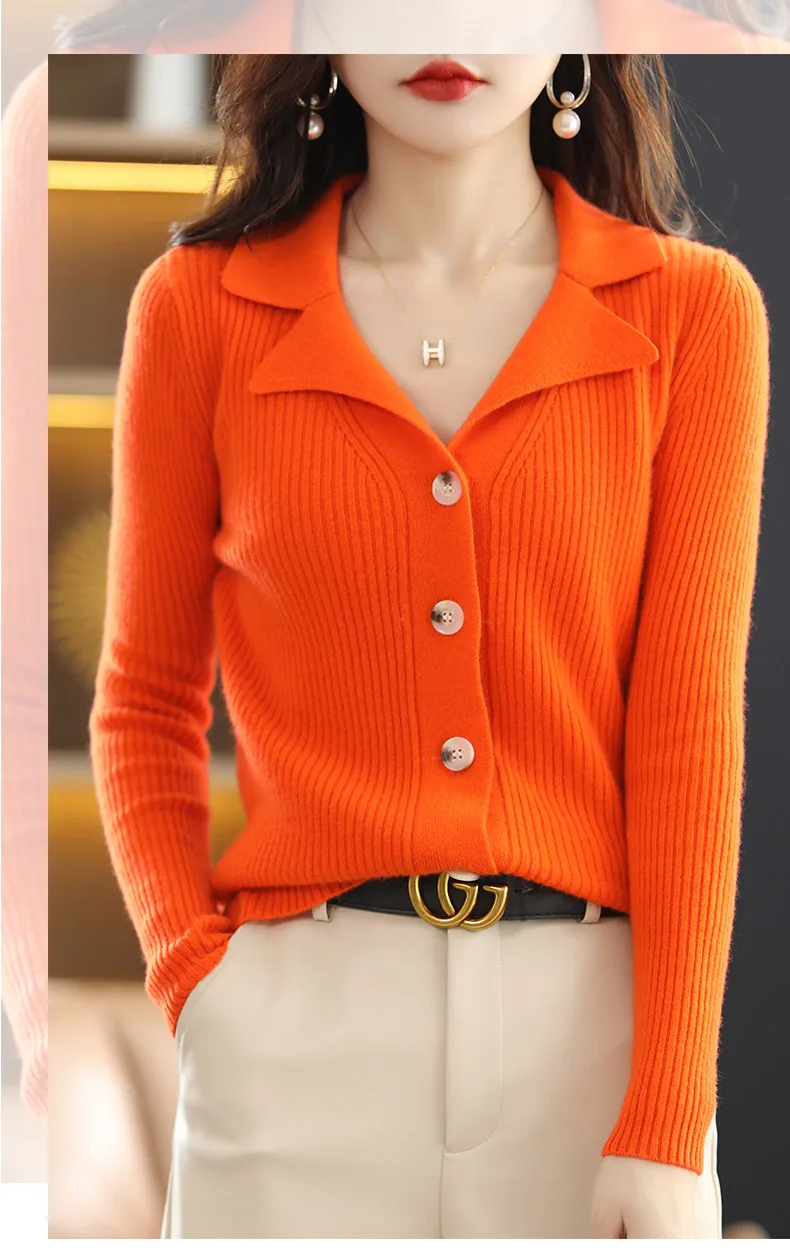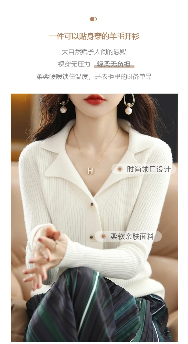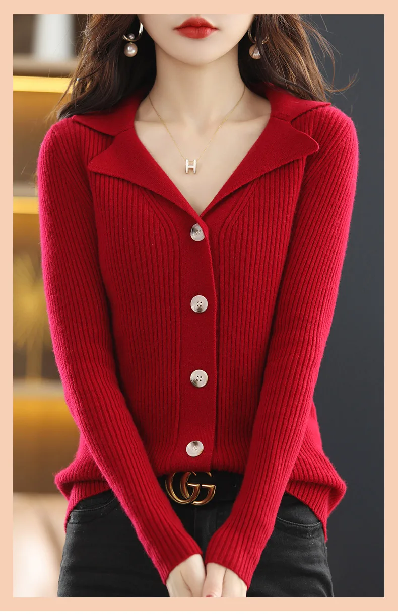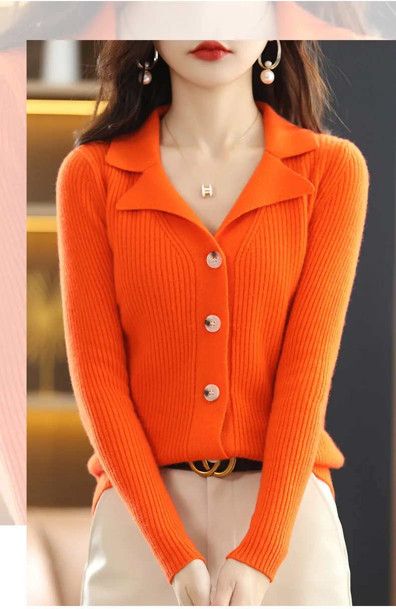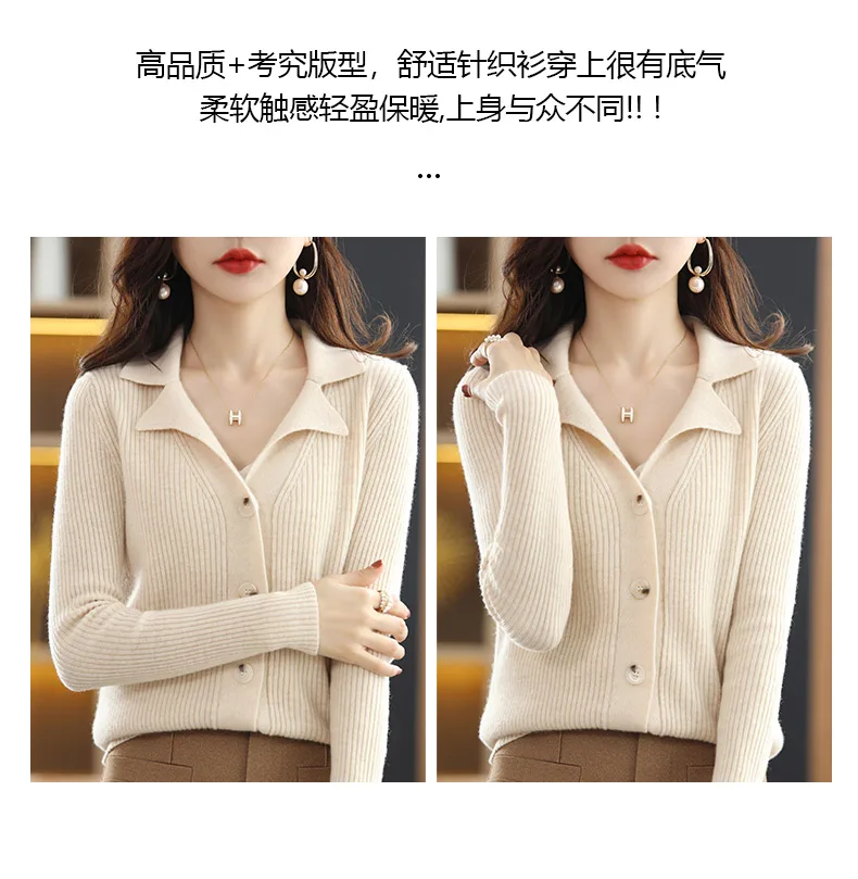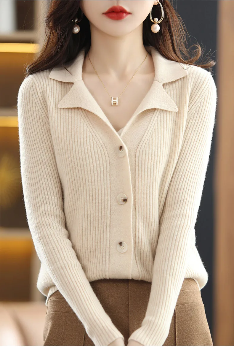 الصوف الخالص سترة مشغولة من الصوف المرأة الربيع والخريف جديد فضفاض و رقيقة رائعة الملابس النسائية شيك التلبيب سترة الكشمير المعنقة