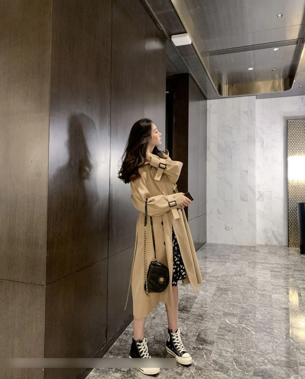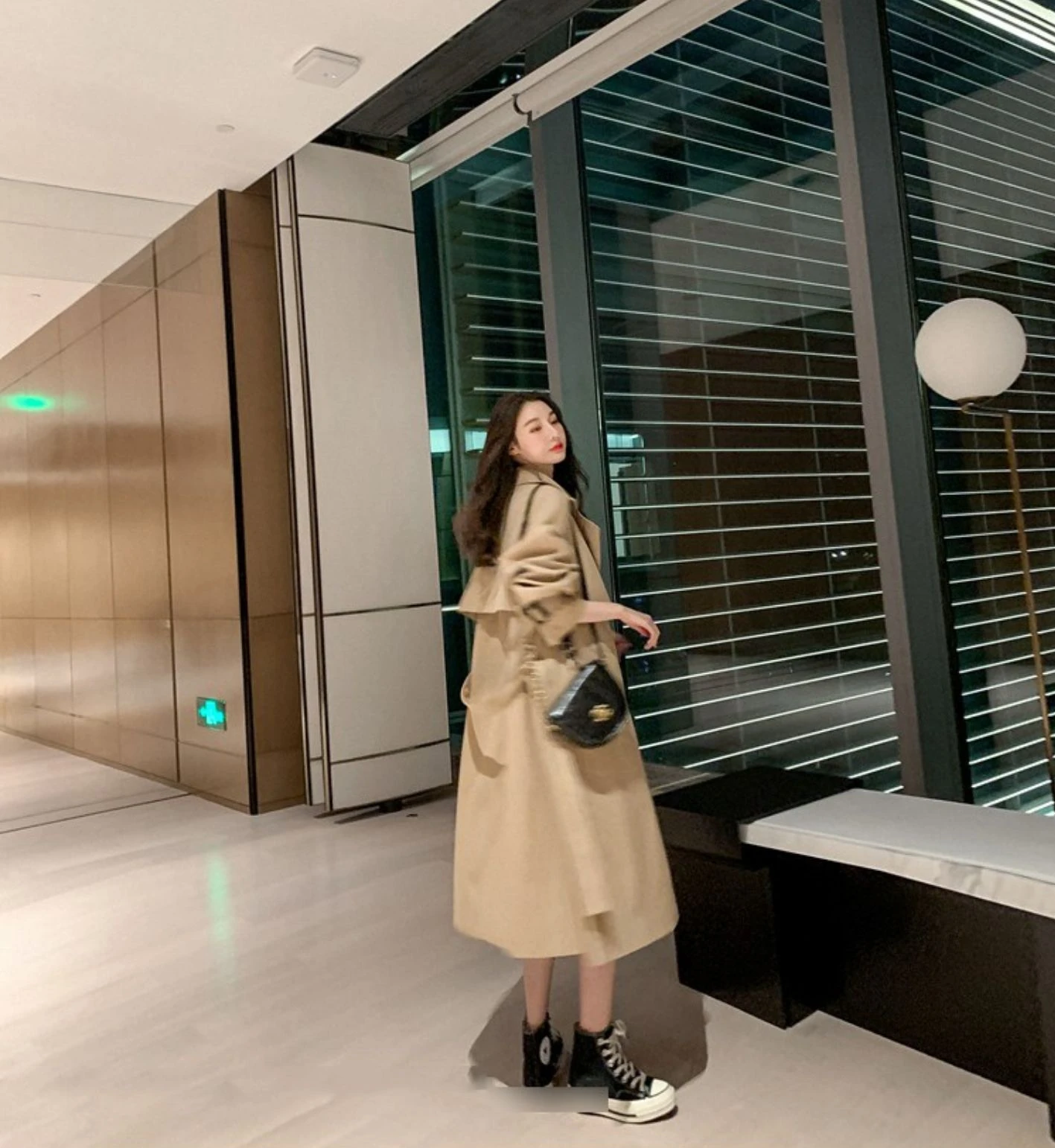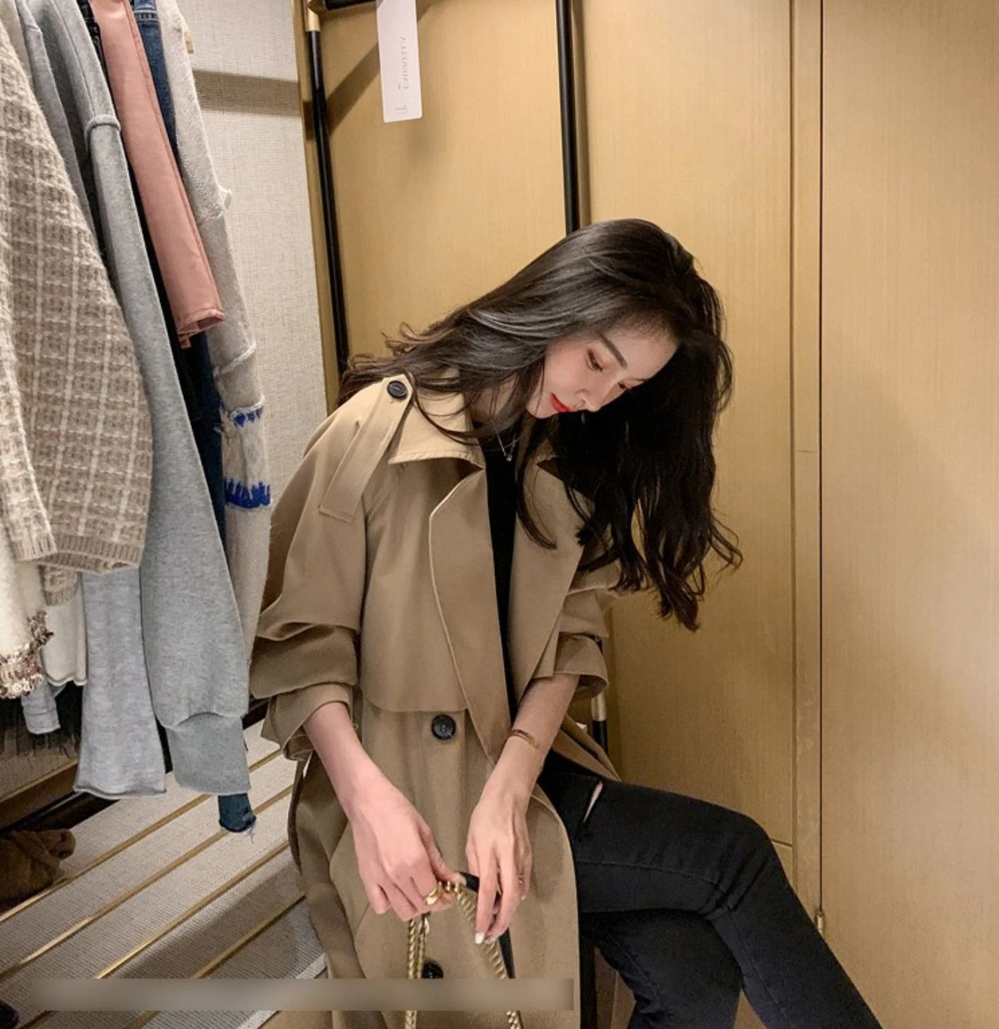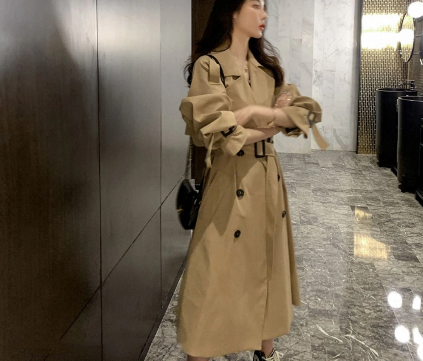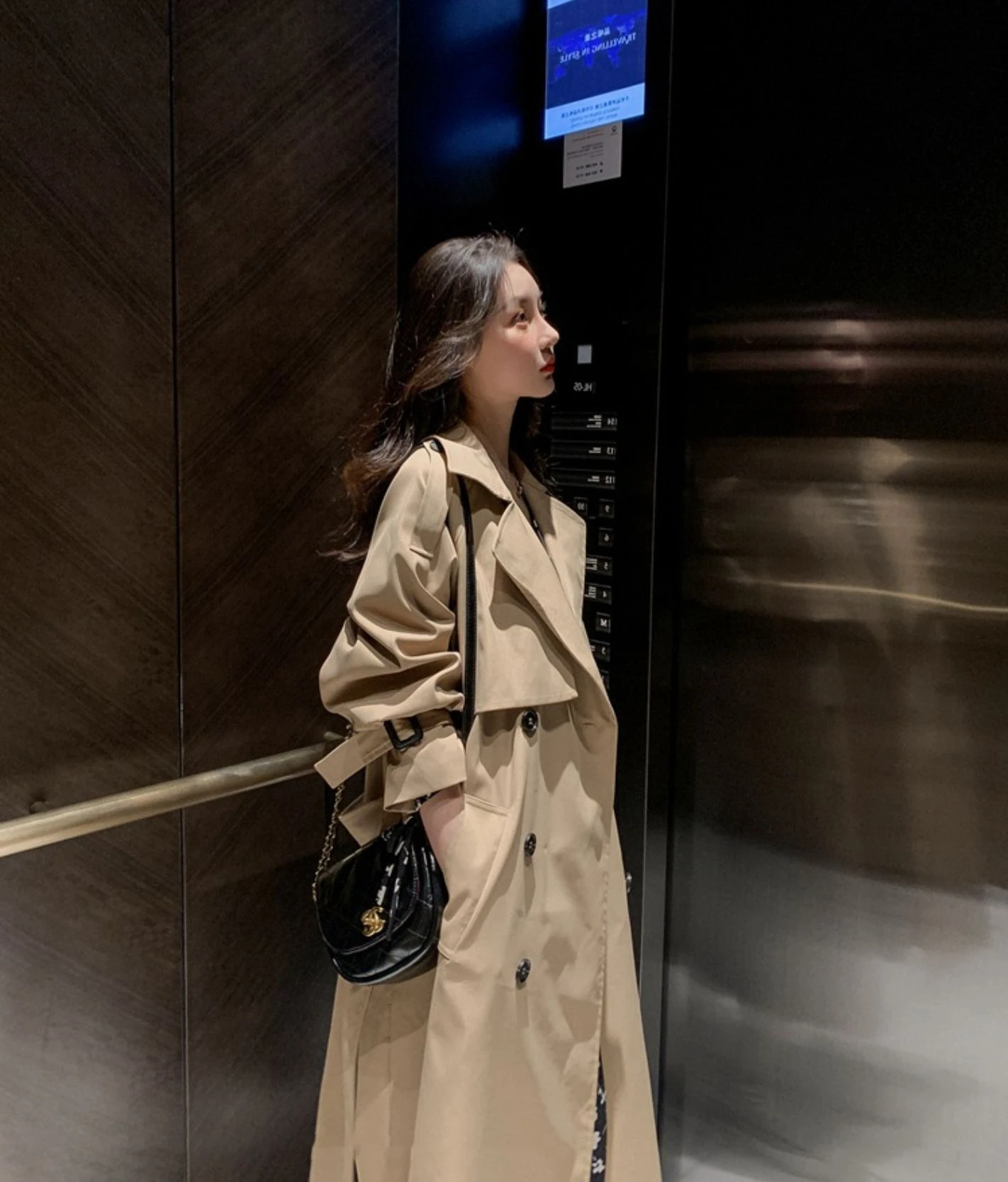 معطف شتوي 2023 للنساء ملابس حريمي لون سادة بأزرار بصف مزدوج سترة واقية طويلة حريمي للعمل