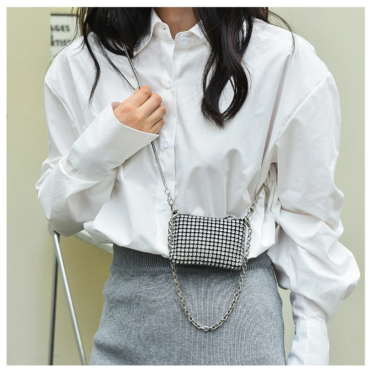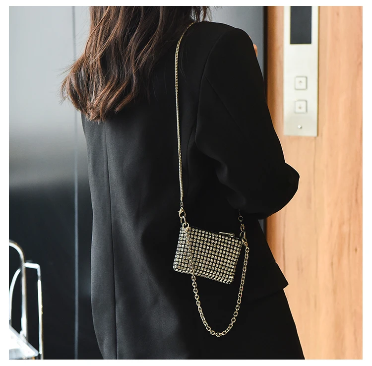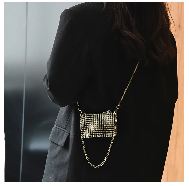 JIOMAY-حقائب يد فاخرة بأحجار الراين للنساء ، محفظة نسائية لأحمر الشفاه ، حقائب كتف صغيرة بسلسلة ، أزياء حفلات ، مصمم ،