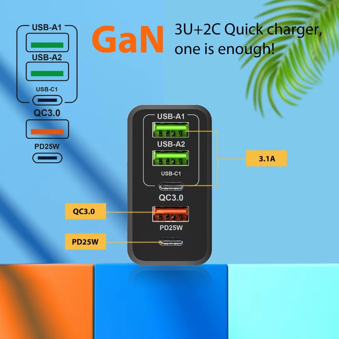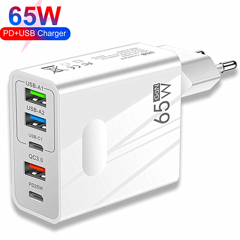 65 واط غان سريع شاحن USB نوع C شاحن الهاتف تهمة سريعة 3.0 5 ميناء محول الطاقة آيفون 14 13 شاومي سامسونج الجدار شاحن