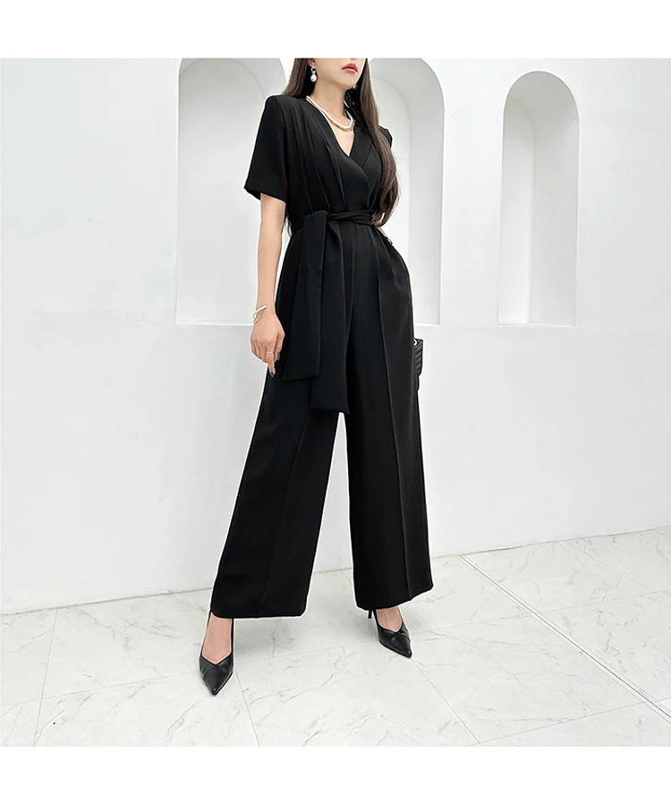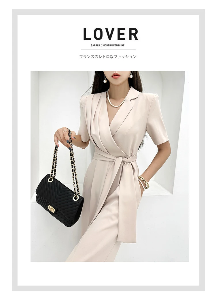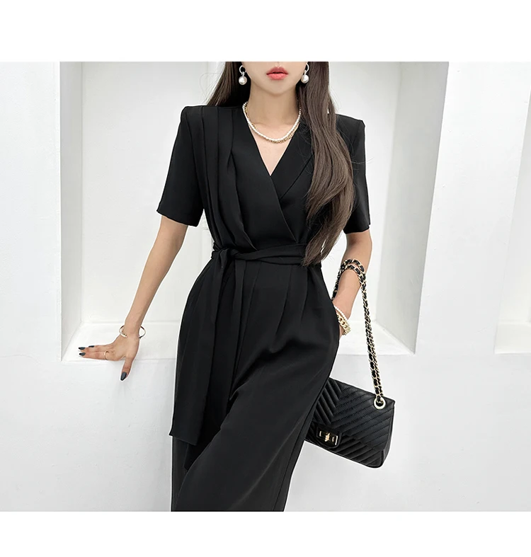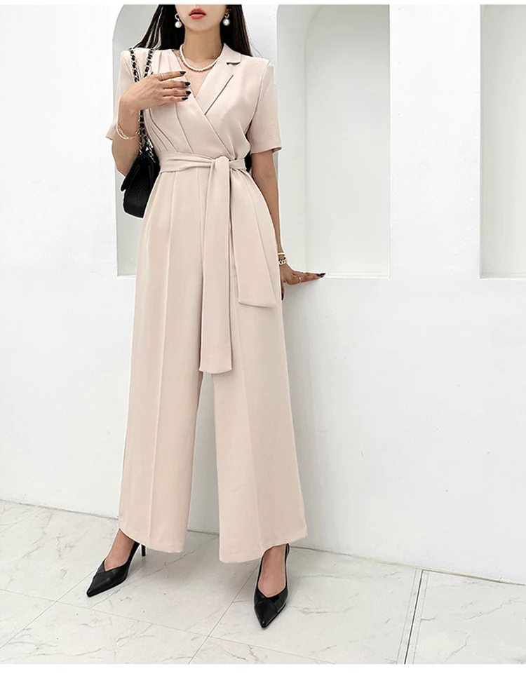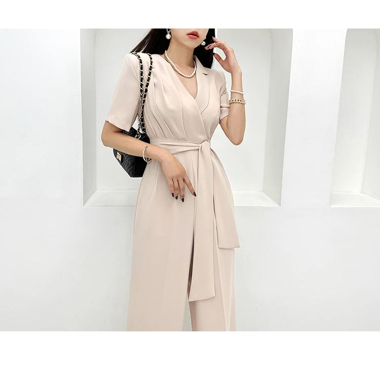 H هان الملكة-المرأة الدانتيل متابعة السراويل واسعة الساق ، أنيقة بذلة الأعمال ، بلايسوت طويلة ، مكتب عادية ، المهنية ، الصيف