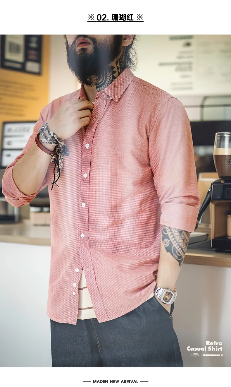 قميص منقوش بأكمام طويلة من Maden-Men ، قطن 100 ، غير رسمي ، أعمال الركاب ، رسمي ، عتيق ، بلوزات اجتماعية ، بلوزات