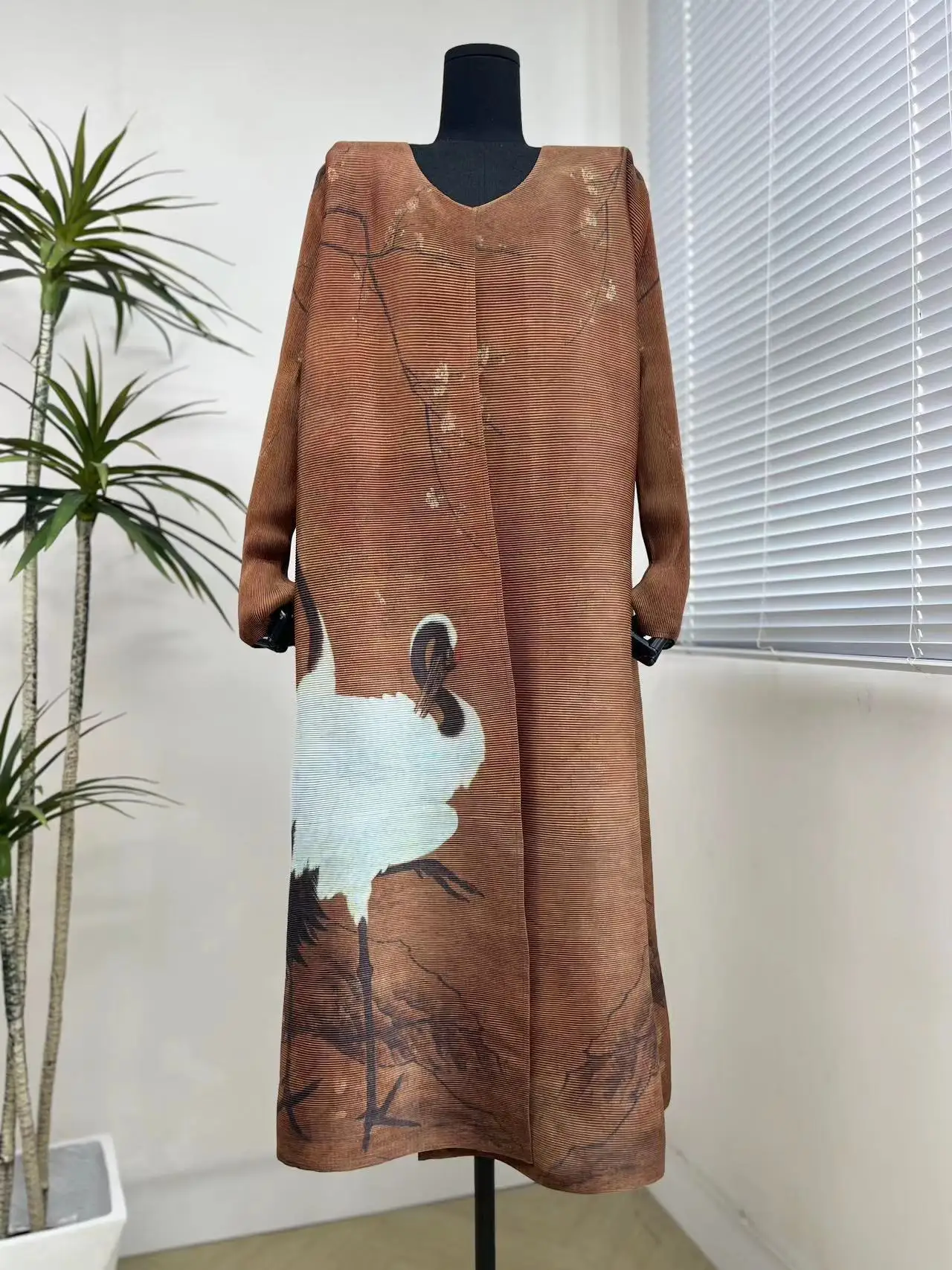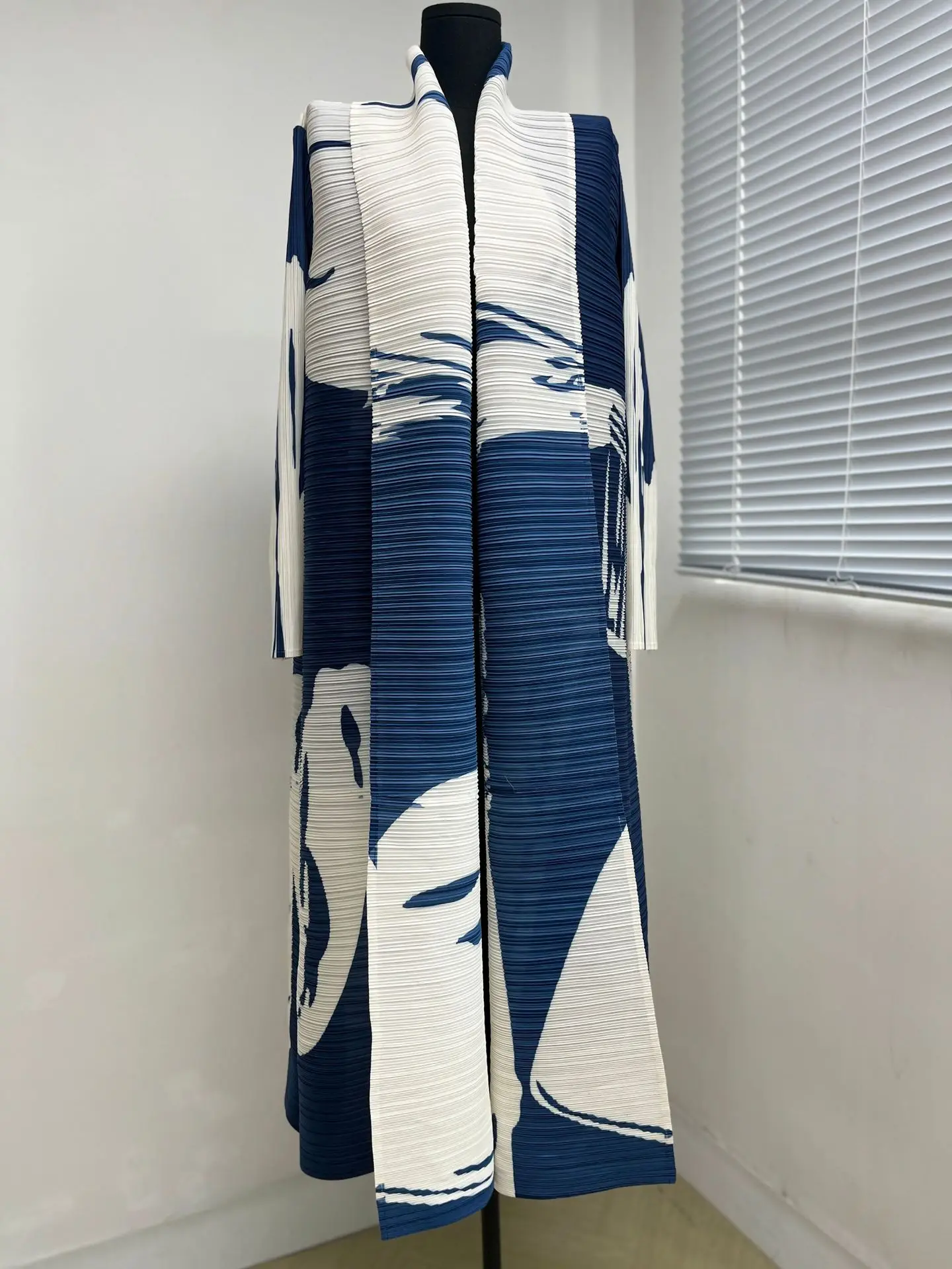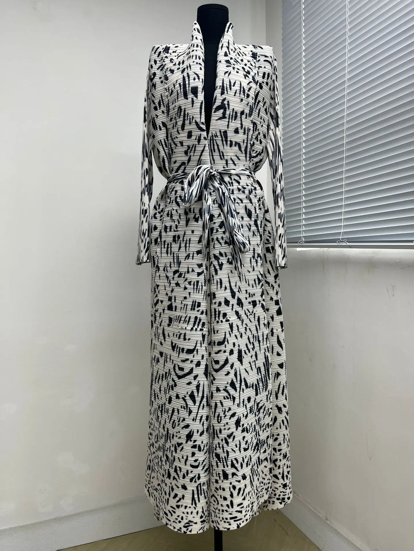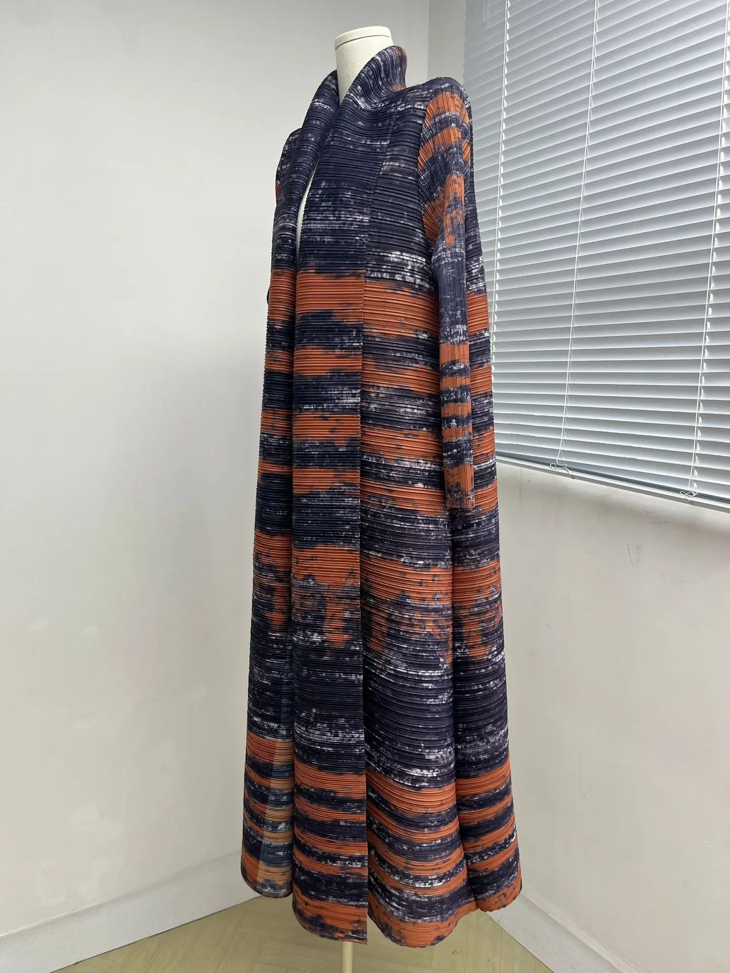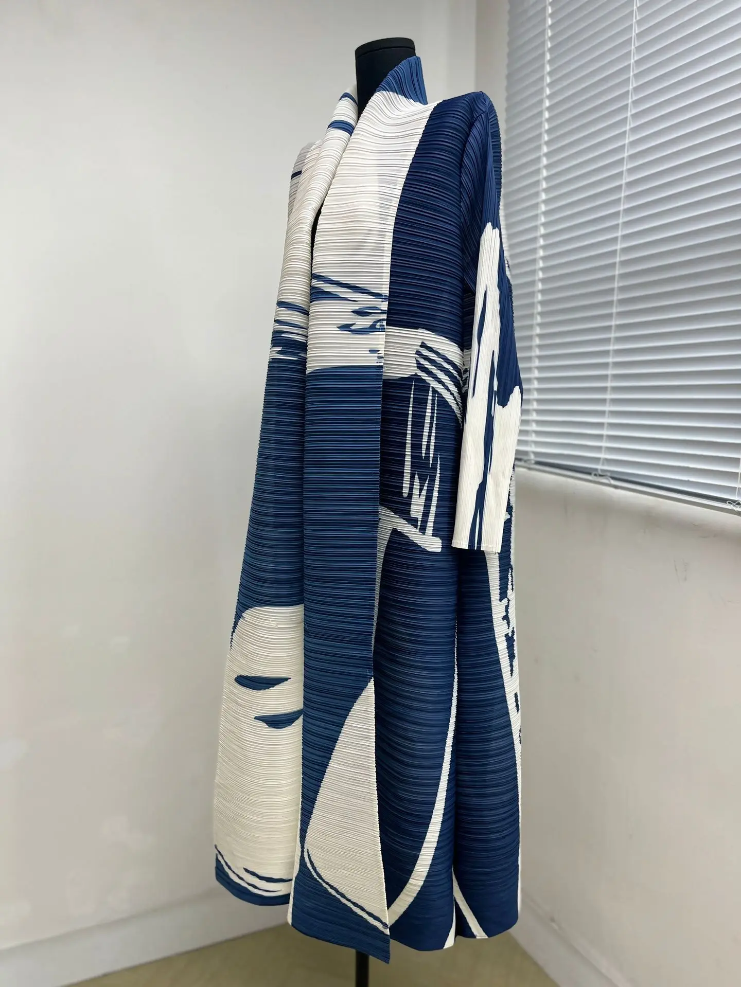 YUDX-Miyake مطوي خمر مطبوعة خندق التلبيب كم طويل سترة للنساء ، الربيع و الصيف معطف ، النمط العربي ، حجم كبير ، 2023
