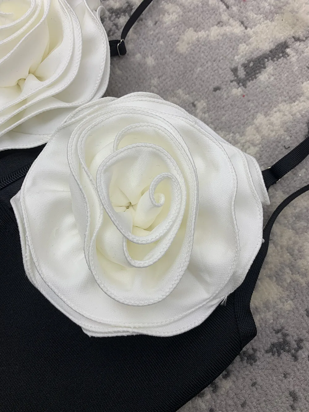 فستان سهرة نسائي مثير مفرغ ، فستان طويل بأربطة ، حزام نودلز إيطالي ، تصميم زهور ثلاثي الأبعاد ، حفلة أنيقة ، جديد ،