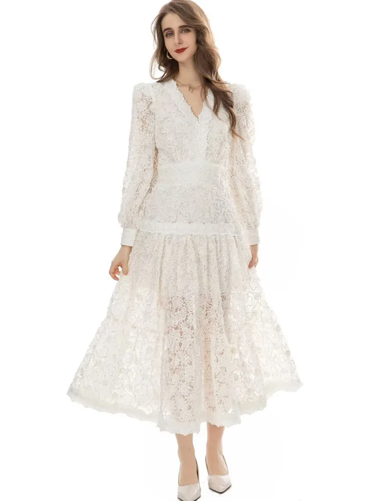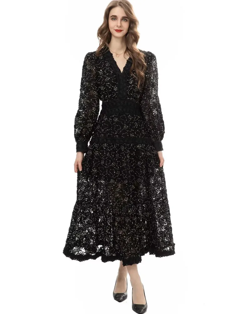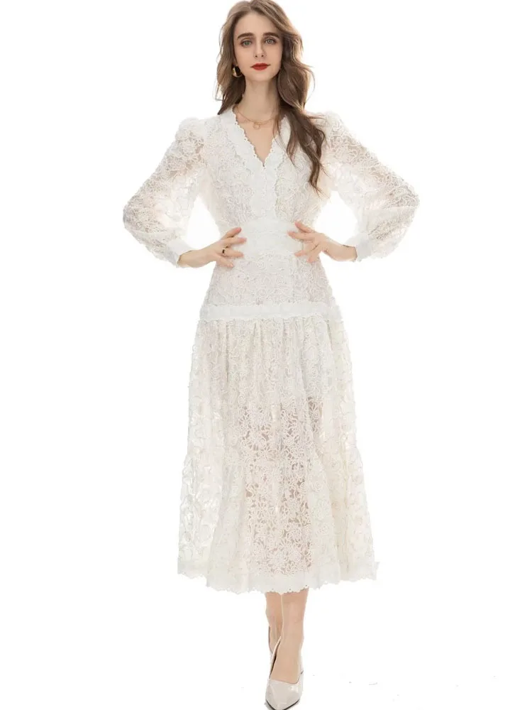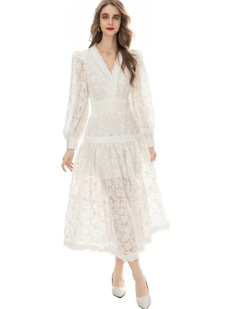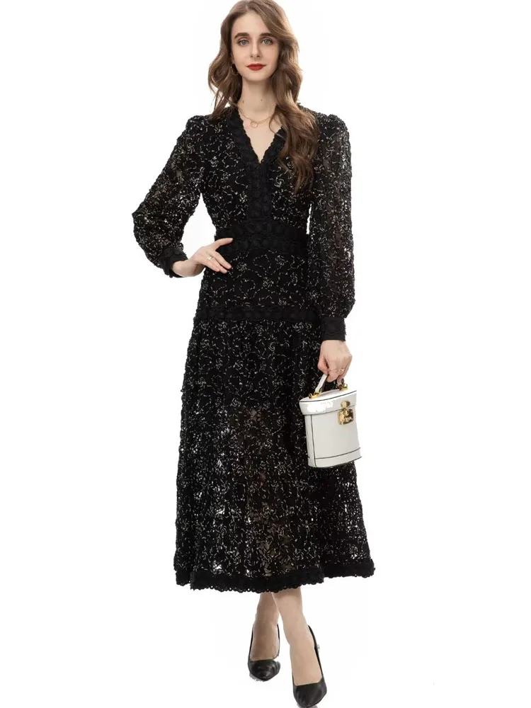 JUNLINNA-فستان طويل أنيق للنساء ، مطبوع عليه زهور ، رقبة على شكل V ، كم فانوس ، حفلة ، عطلة ، تنحيف ، رقعة ، موضة