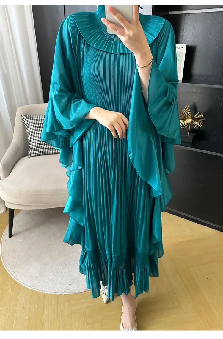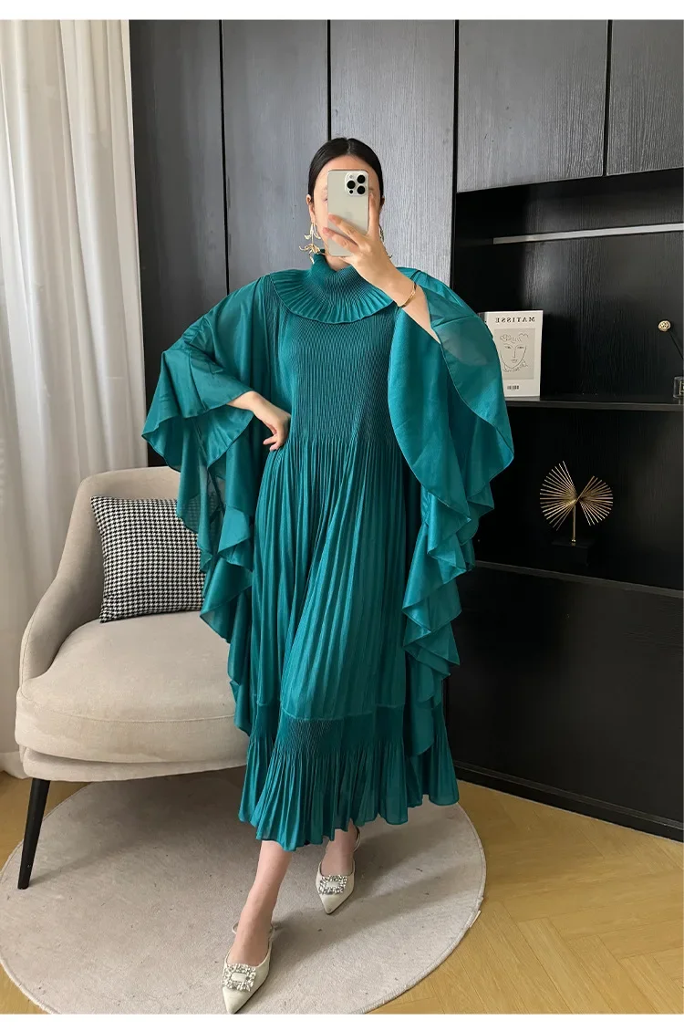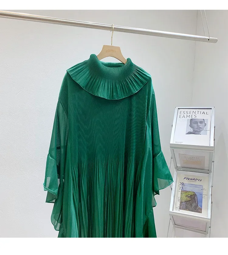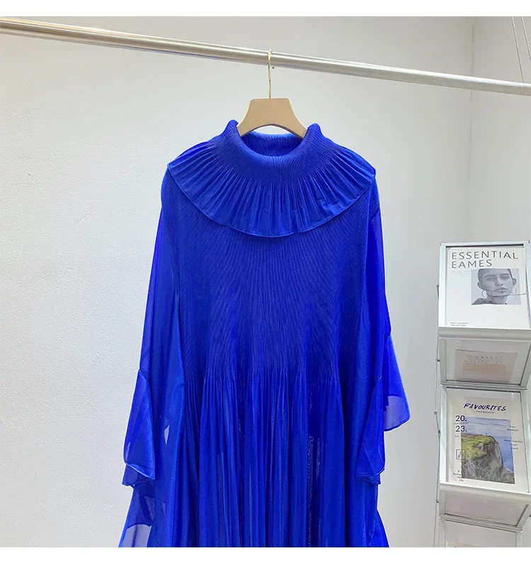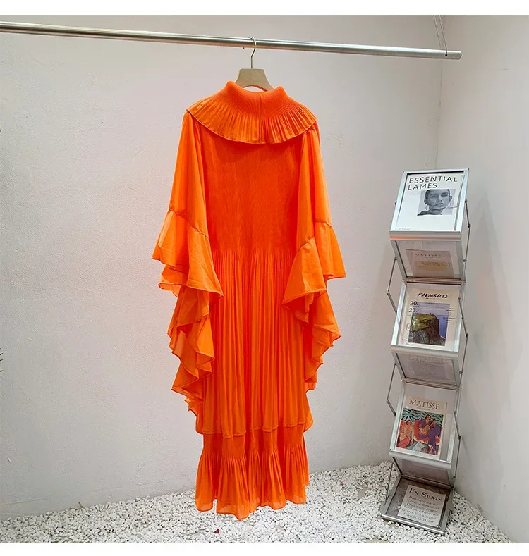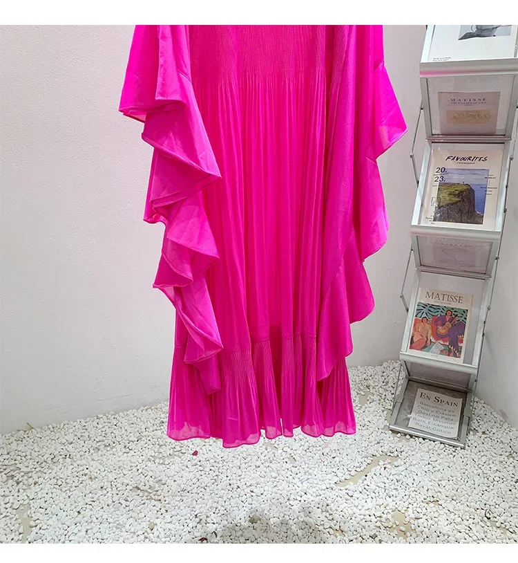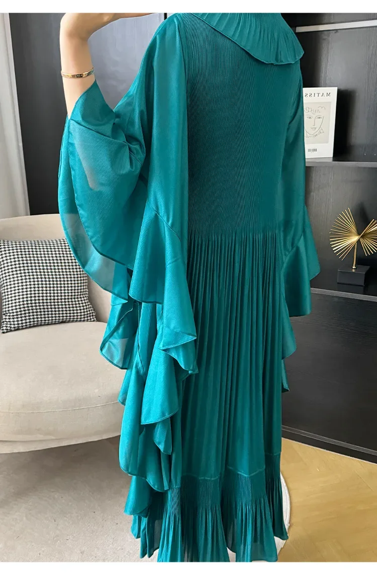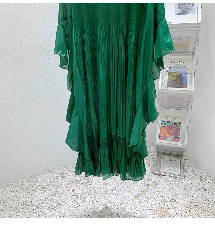 فستان نسائي مطوي من الدانتيل ، ثنيات ، كم مكشكش ، تنورة متوسطة الطول ، ملابس نسائية ، أنيقة ، مزاجية ، ربيعية ،