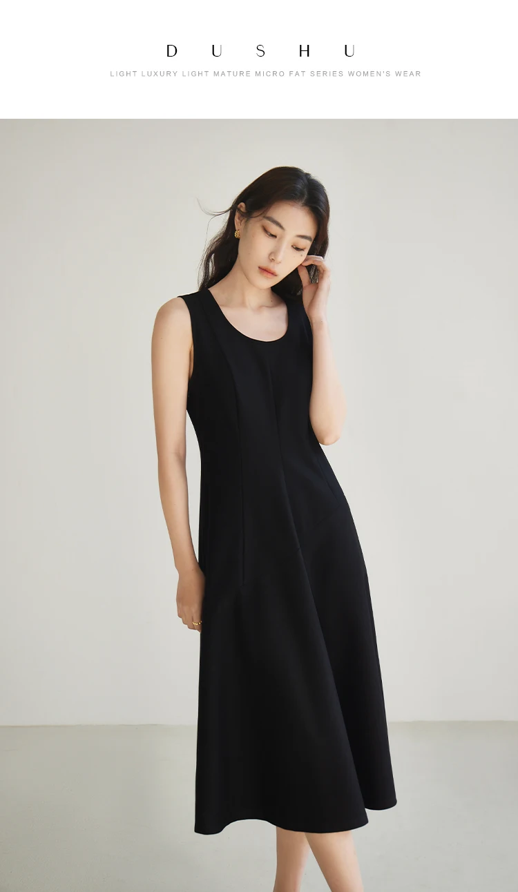 فستان نسائي بدون أكمام من دوشو ، صدرية سوداء صغيرة للإناث ، أنيقة وبسيطة ، تصميم أنيق ، ربيع ،