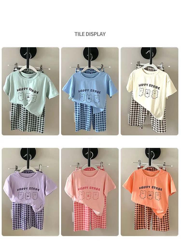 بدلة منزلية للأطفال ، بنطلون بأكمام قصيرة ، ملابس تكييف الهواء ، قسم رقيق ، قطن ليكرا ، أولاد أ ، صيف ، جديد