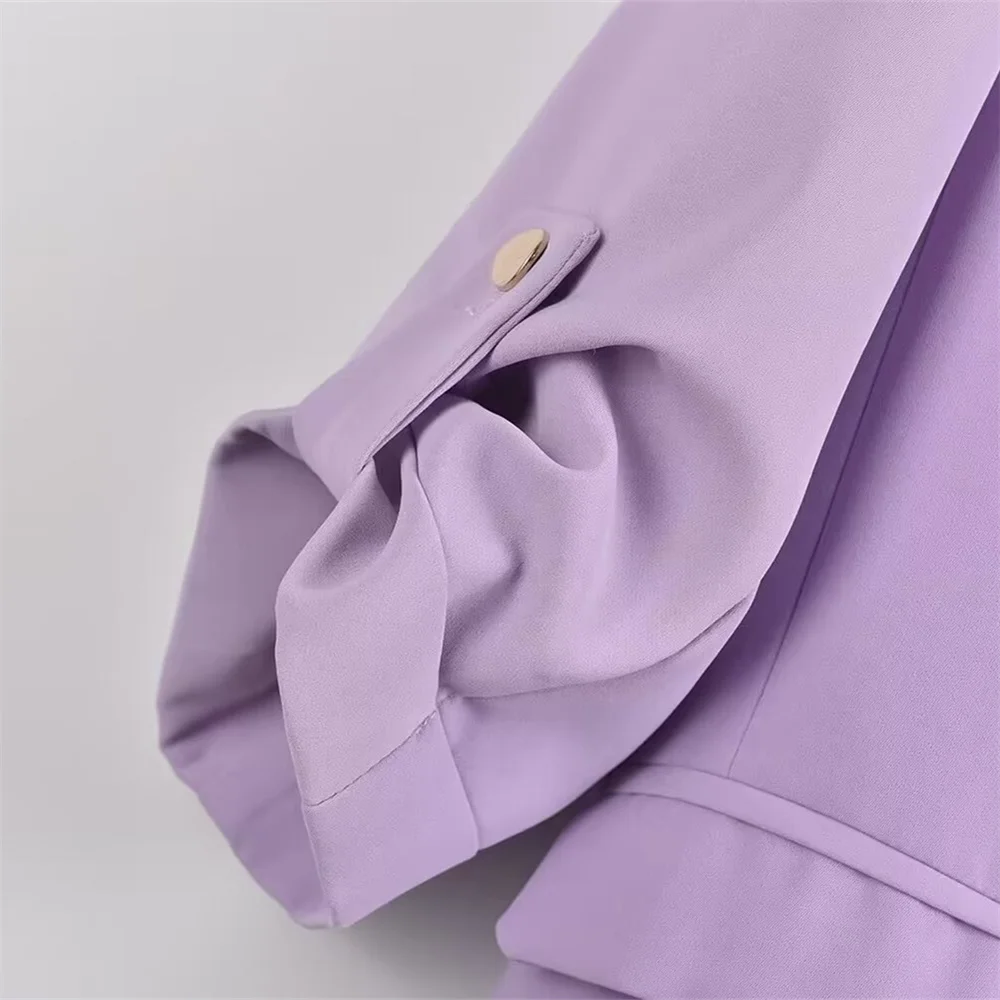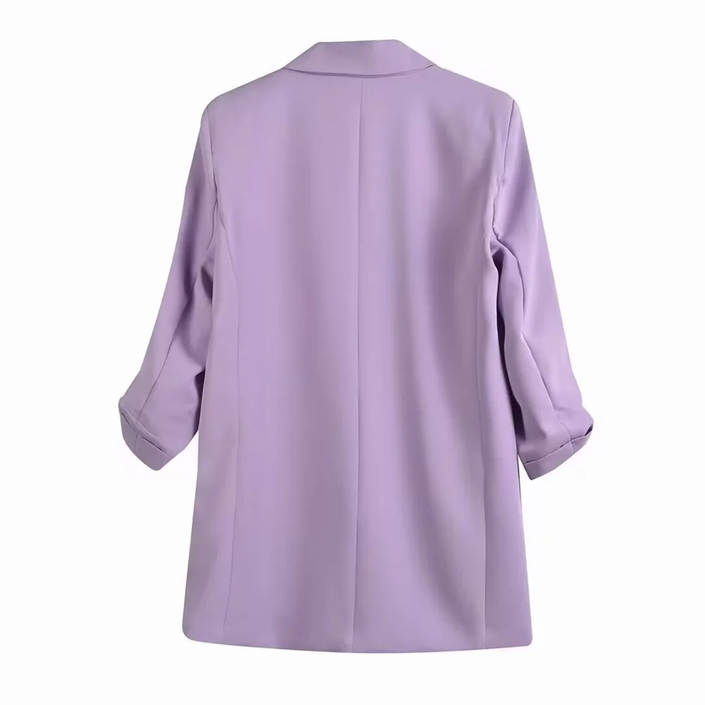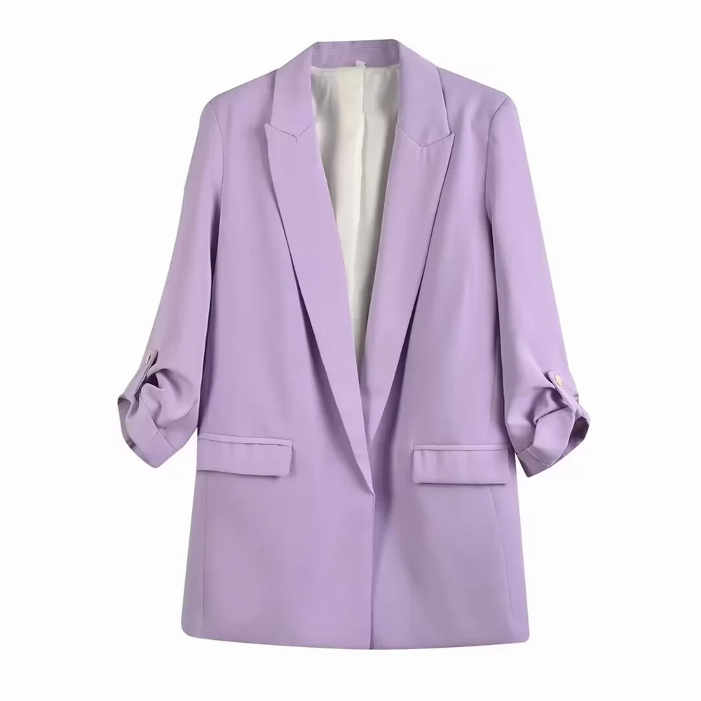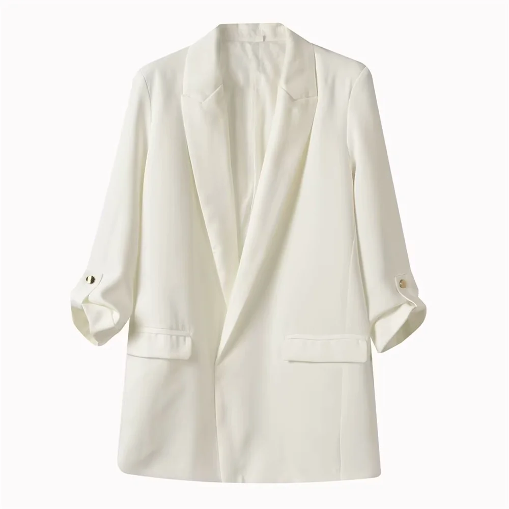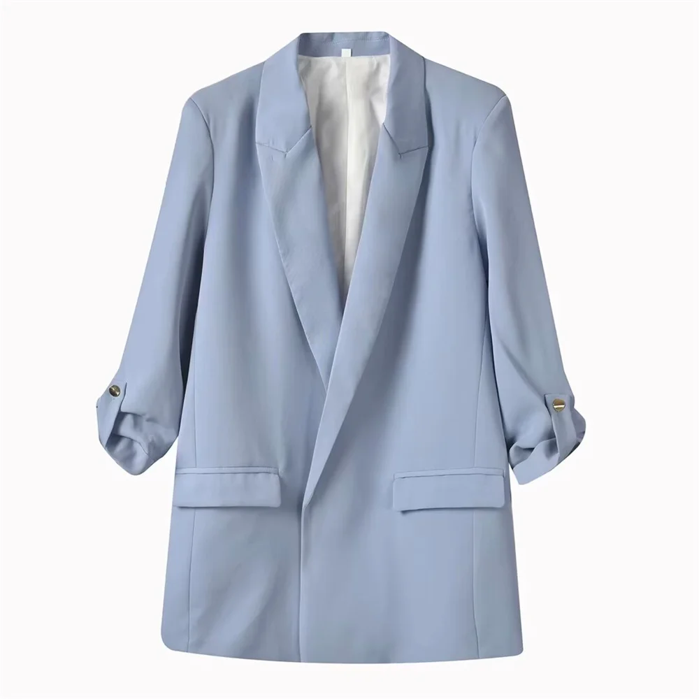 سترة نسائية فضفاضة كاجوال ومتعددة الاستخدامات بأكمام مطوي ، بدلة أحادية اللون بدون أزرار ، ربيعية ، جديدة ، مزاجية ،