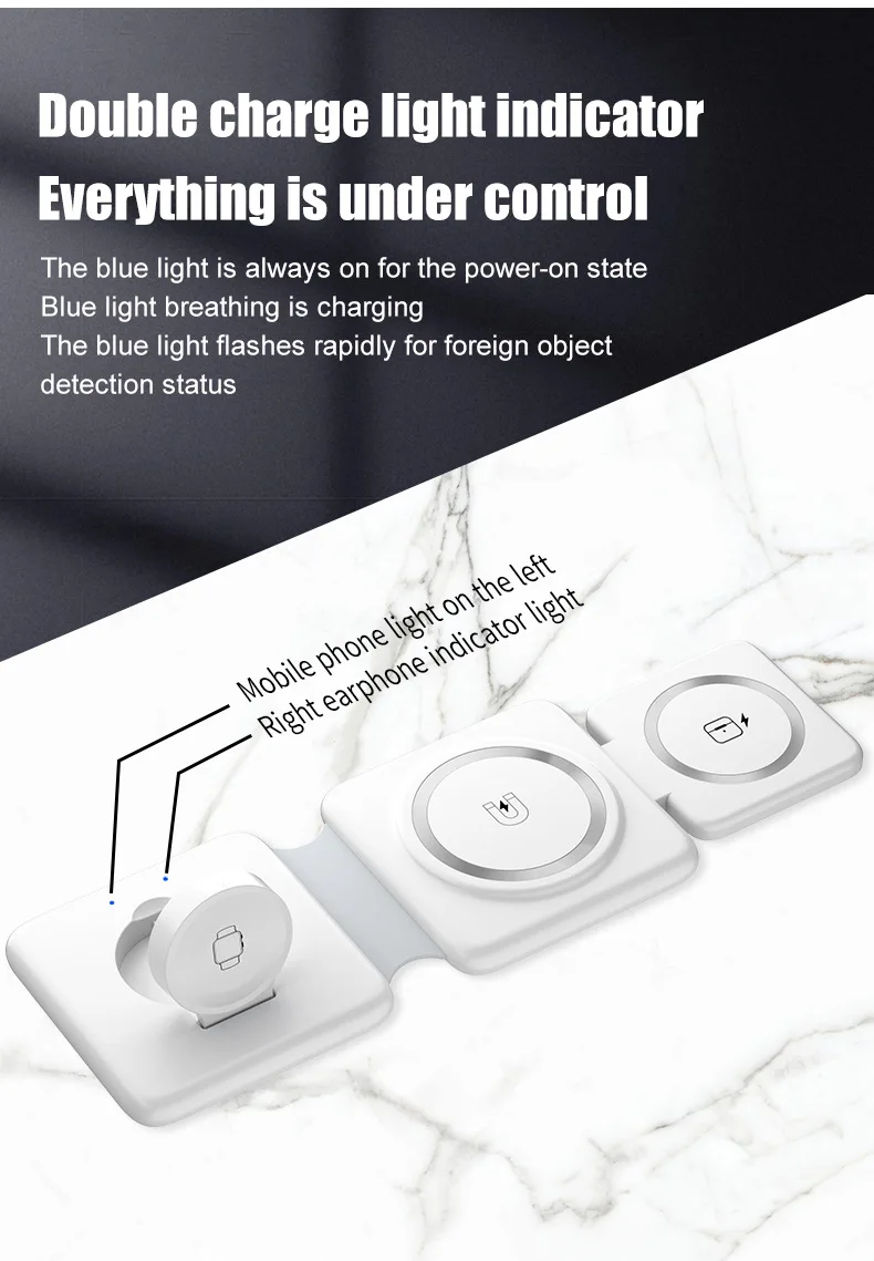 حامل شاحن لاسلكي مغناطيسي قابل للطي ، حامل شاحن سريع للآيفون 15 ، 14 ، 13 برو ، ماكس ، بلس ، إيربودز 3 ، 2 محطة قفص الاتهام ، 3 في 1