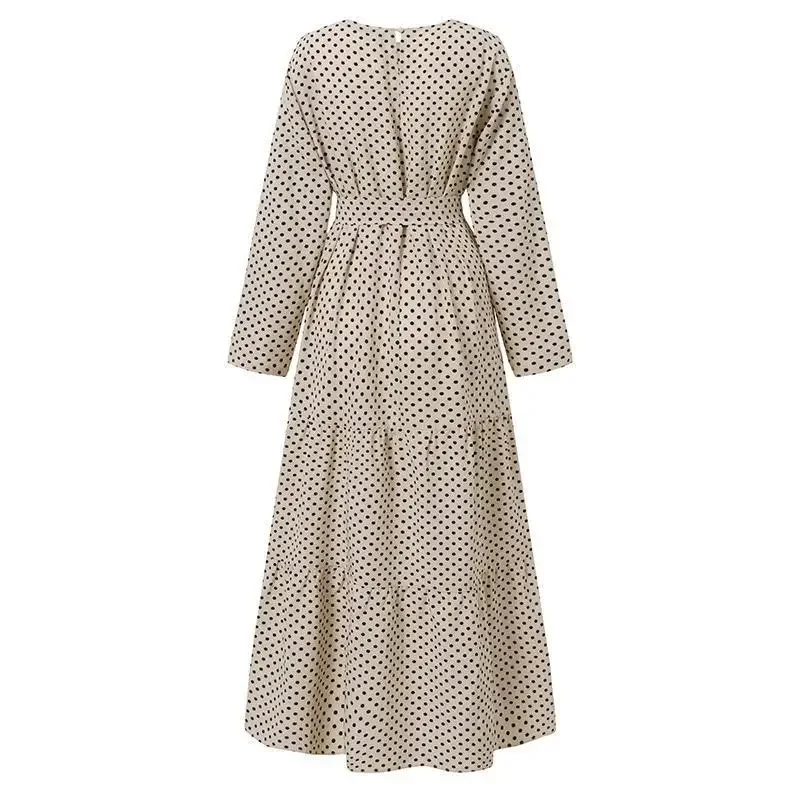 • نمط نقطة البولكا الفريد:يضيف نمط نقاط البولكا الفريد لهذا الفستان لمسة من الأناقة والرقي. إنها قطعة مميزة ستجذب انتباه الجميع بالتأكيد.