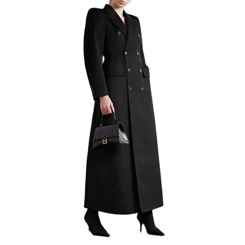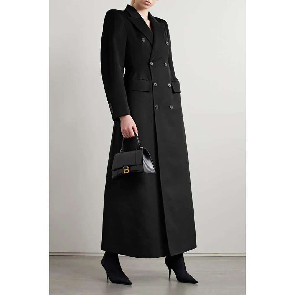 جاكيت نسائي أسود مزدوج الصدر طويل ، معطف يومي نسائي ، سترة رسمية بطول الكاحل ، رداء عربي ، فاخر ، 1 *