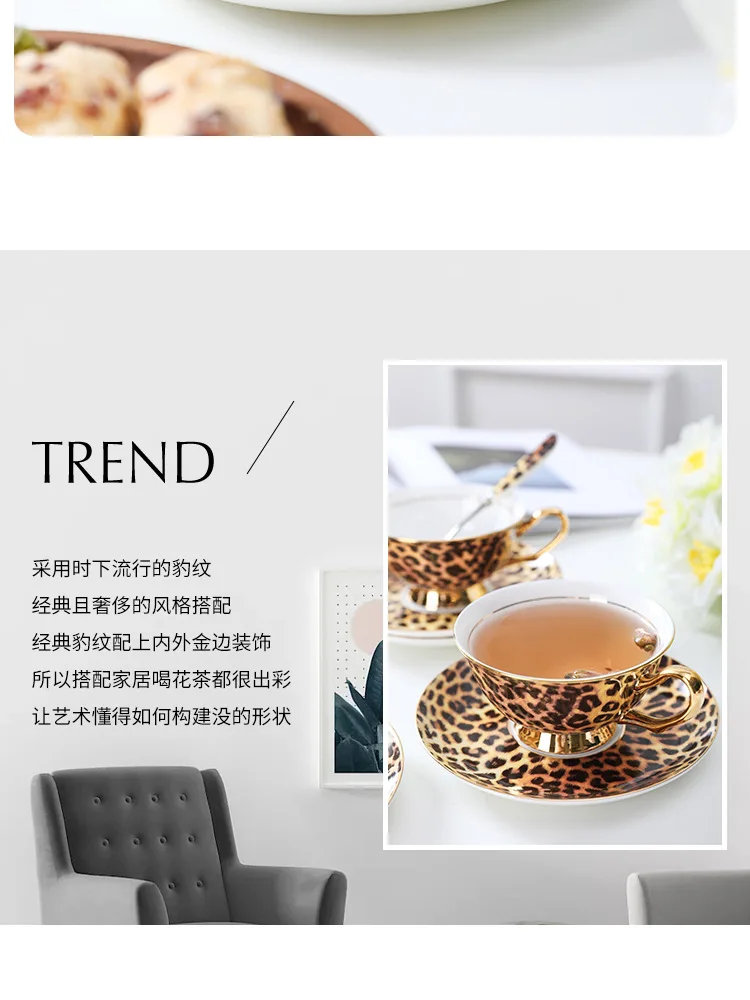 طقم أطباق سيراميك الأوروبية ، أكواب قهوة ، أكواب ، فهد ، بورسلين عظمي ، كوب شاي بعد الظهر الأوروبي الفاخر