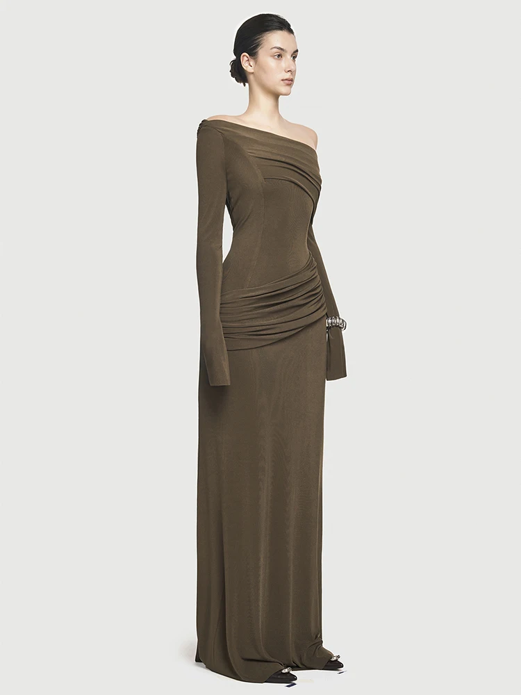 فستان أنيق من LISM بياقة مطوي غير متماثل