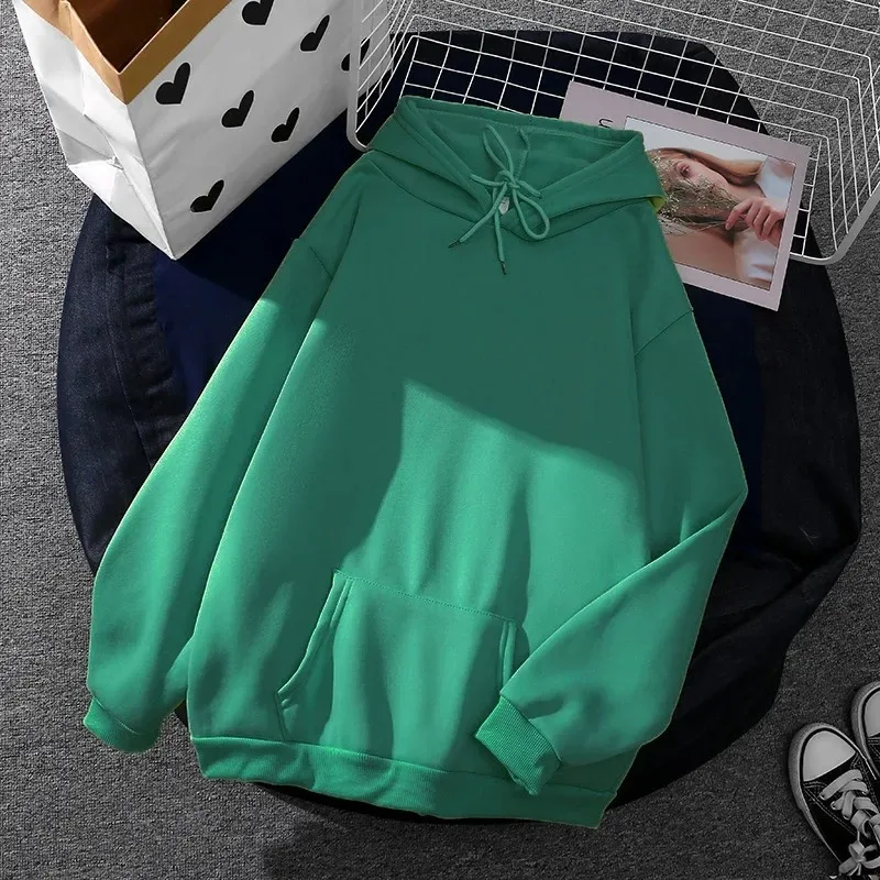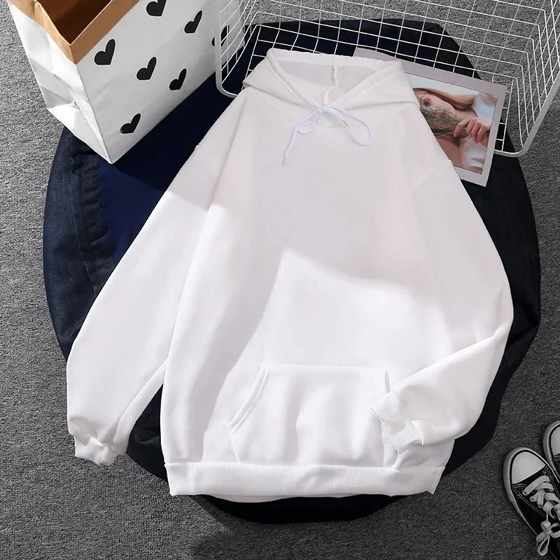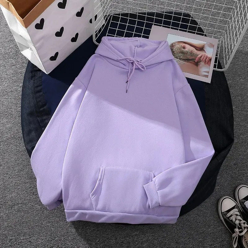 سويت شيرت بقلنسوة بلون سادة للنساء بطباعة شعار قابلة للتخصيص