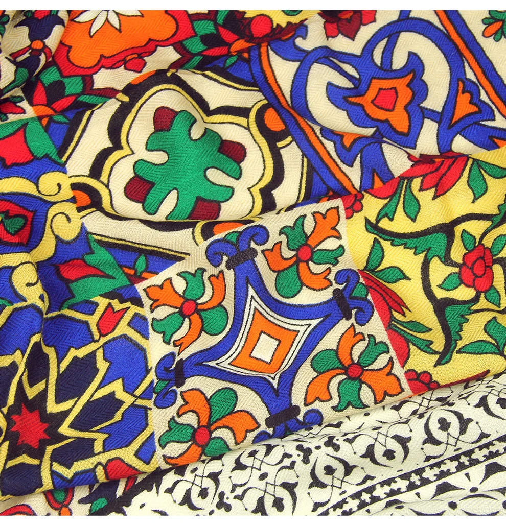 أوشحة رأس مربعة من الصوف لعام 100% للسيدات أنيقة بشال دافئ وشال طويل مطبوع عليه أشكال حيوانات وشاح باندانا للحجاب على الشاطئ