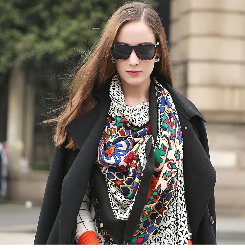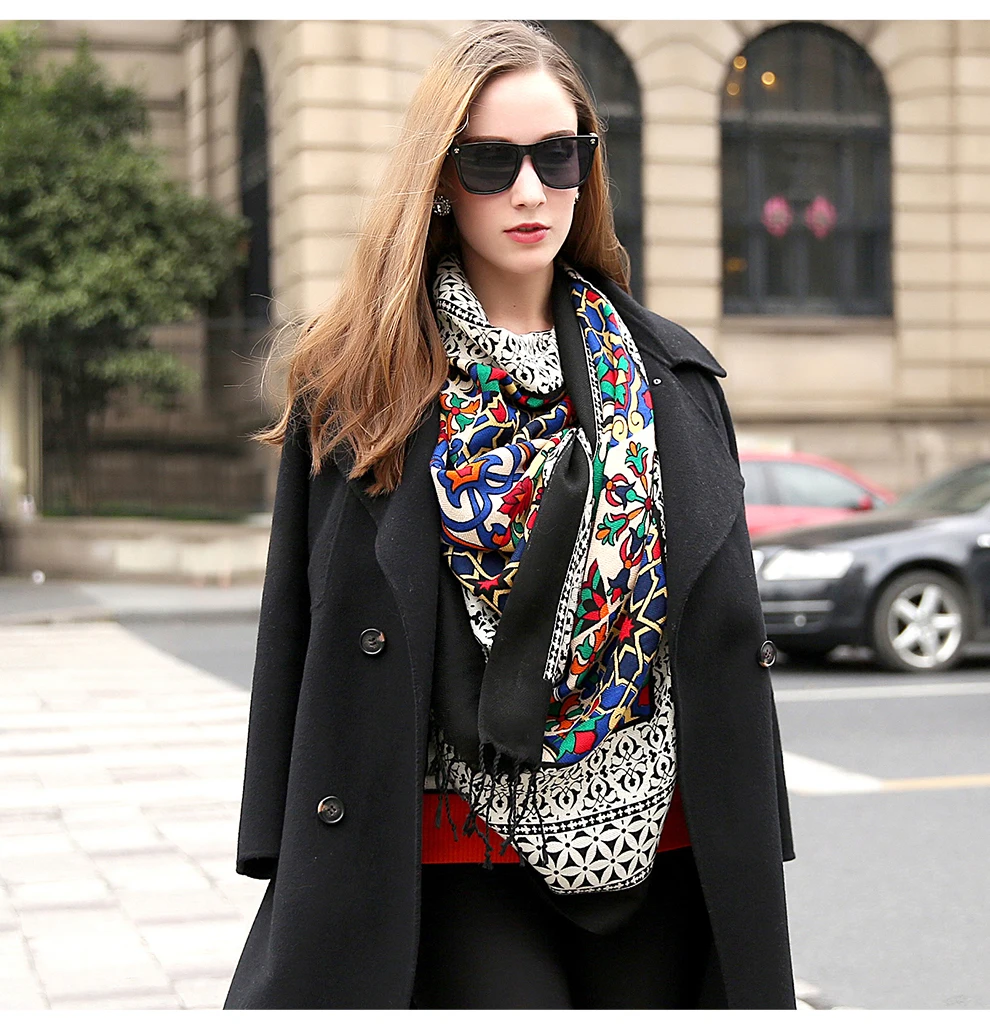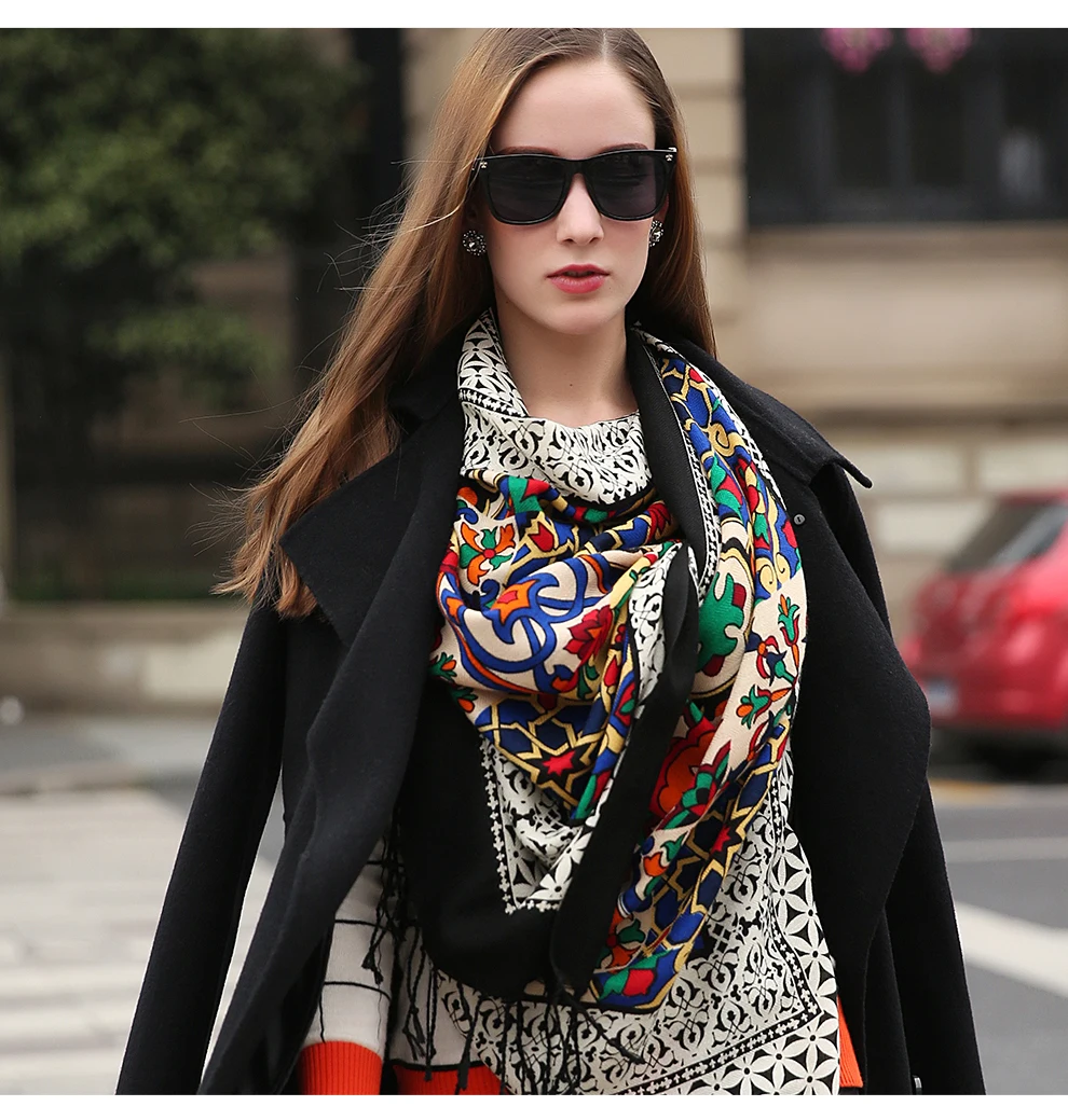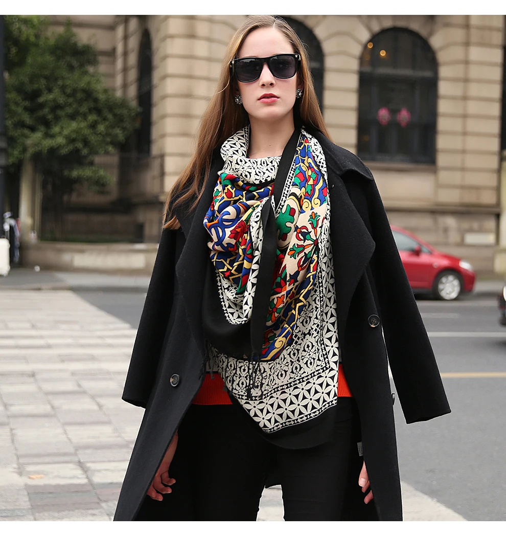 العلامة التجارية الفاخرة 100 الصوف الخالص كبيرة الحجم النساء باندانا الحجاب الباشمينا الكشمير وشاح الفاخرة ميرينو شال معطف